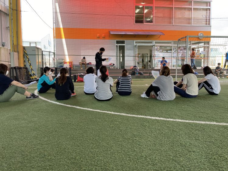 試合の後は、お母さんには松尾コーチの食育講座を受けてもらい、なぜ食事が大切なのかを改めて学んでいただきました。