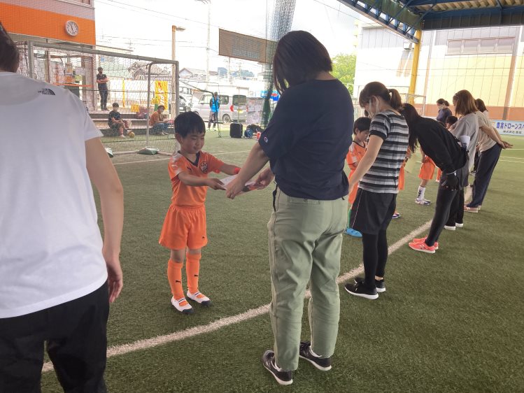 最後はスクール生とお母さんチームに分かれての試合です。いつもサッカーの練習をしている子どもたちが楽勝で勝つと思いきや、なんとお母さんチームが巧みなパスを使って上手に攻め、とても良い試合になりました。両チームともゴールを決めて、引き分けで終わりました。