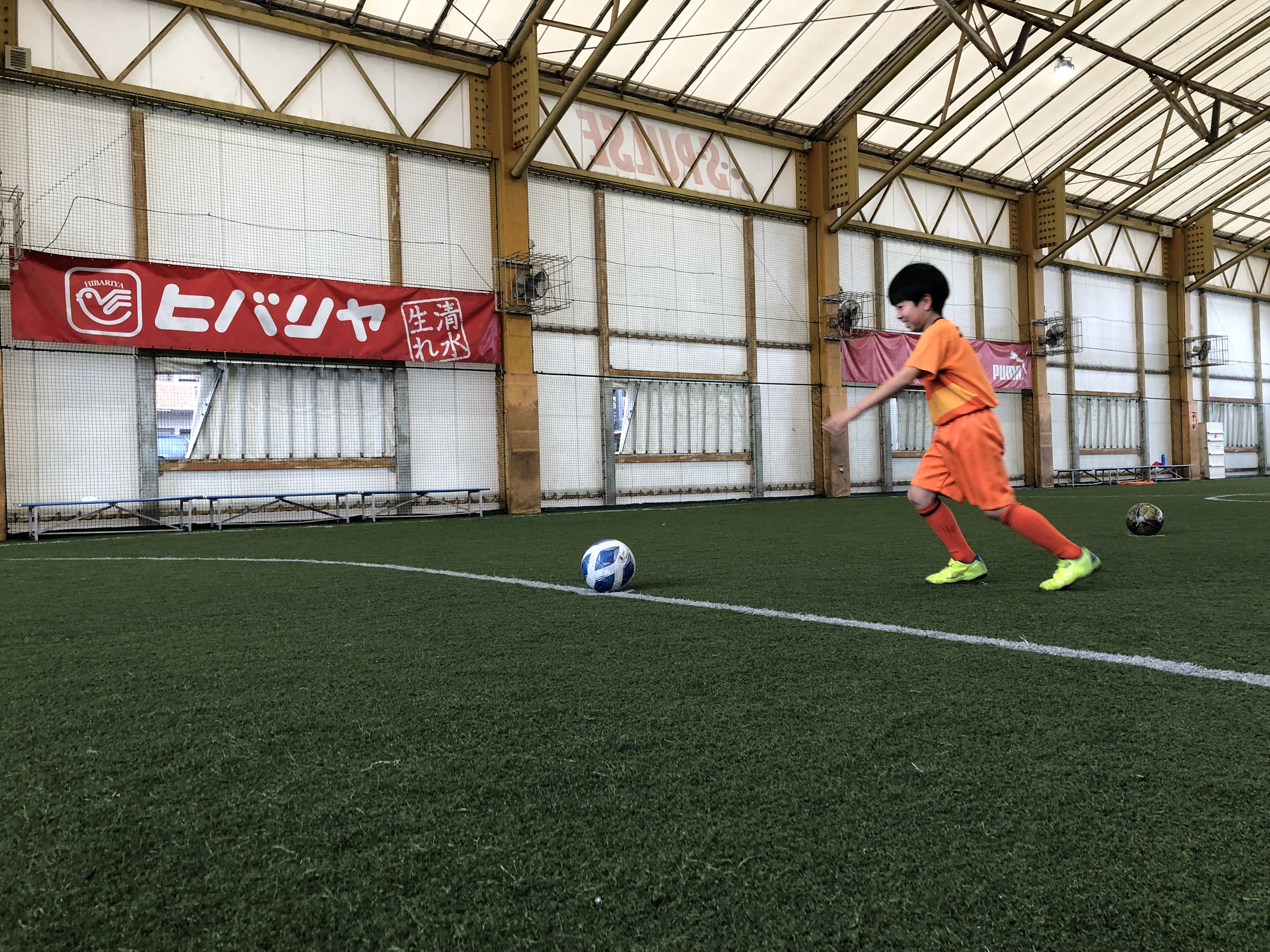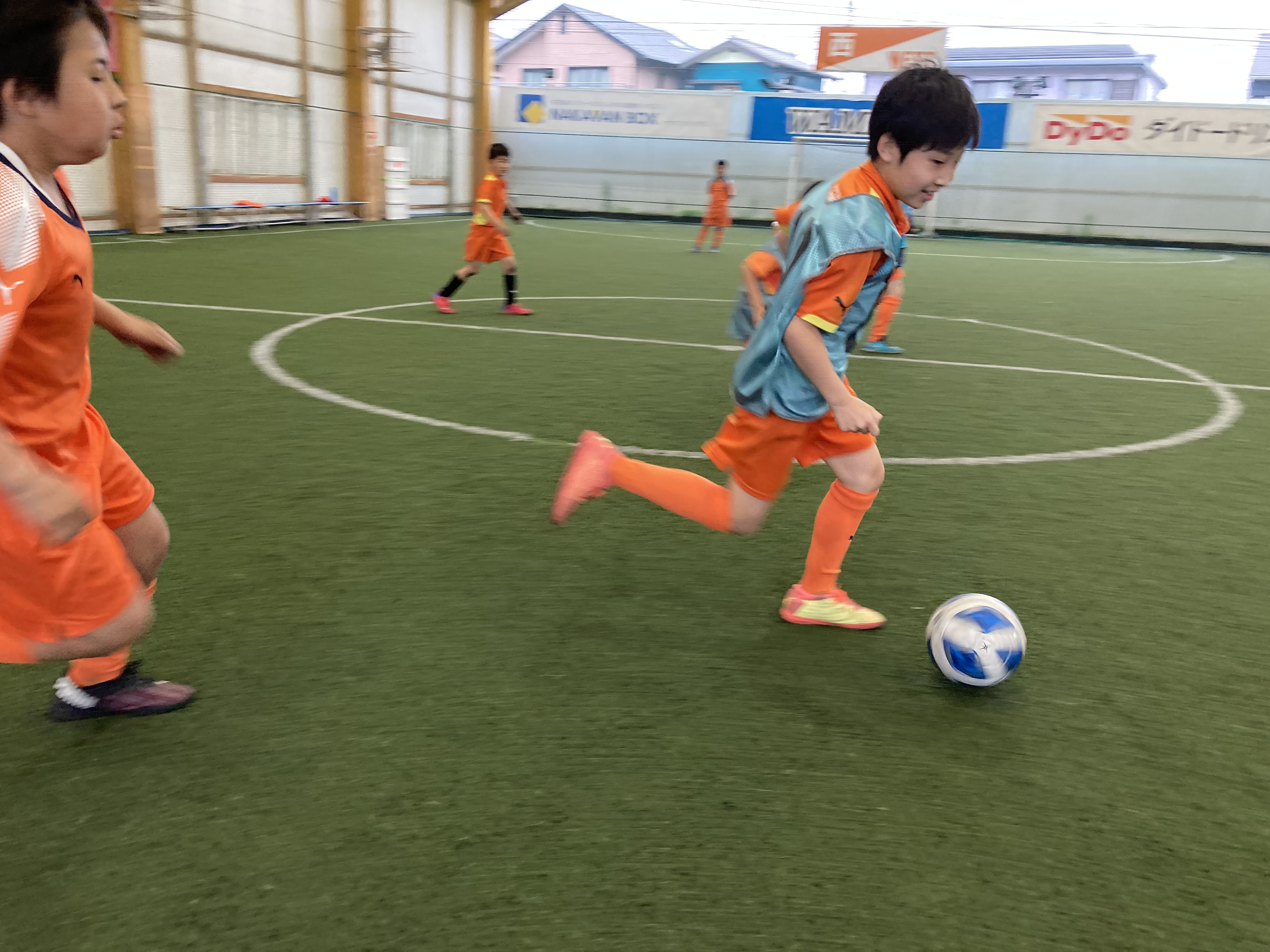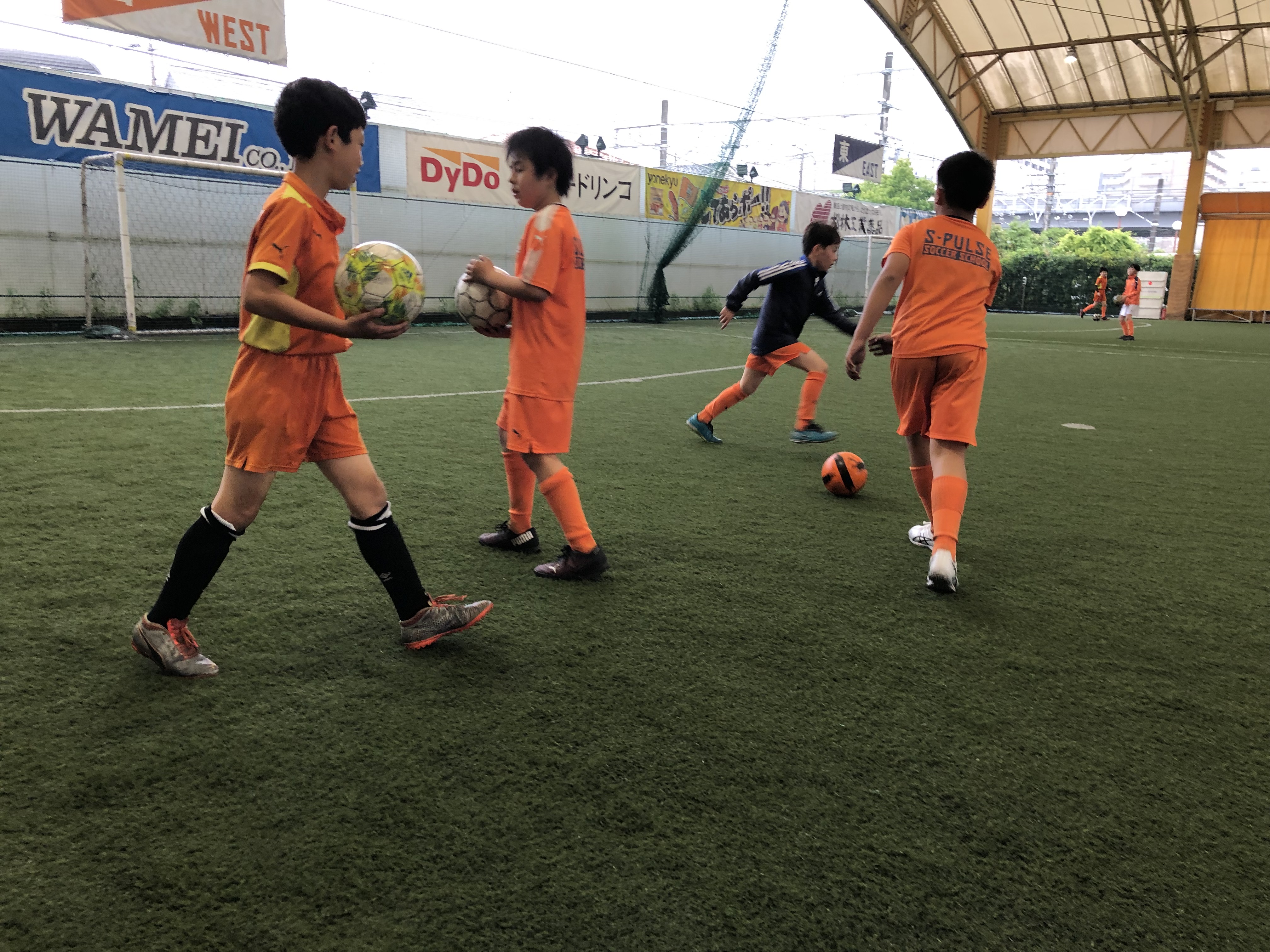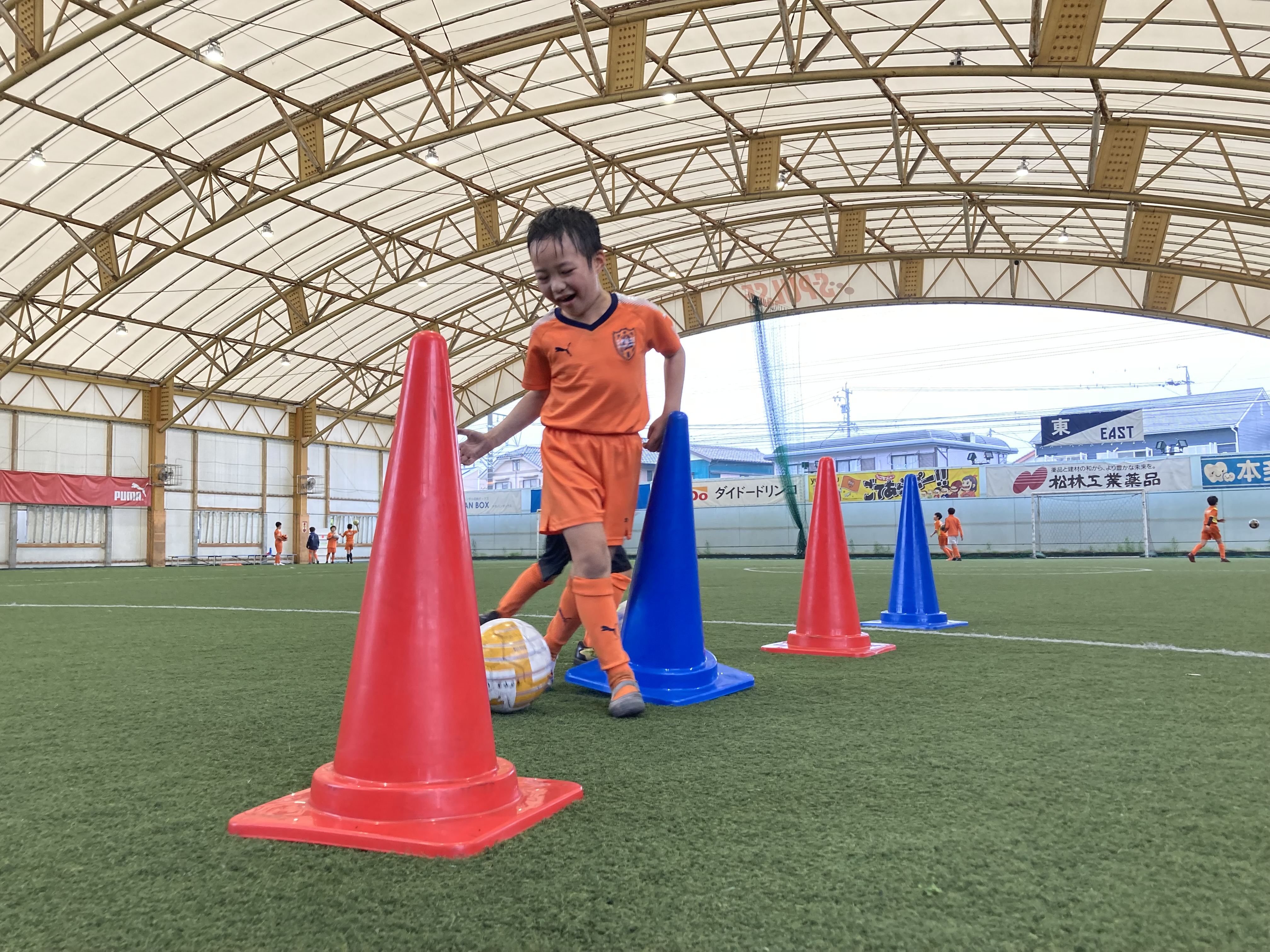 初めて来た1年生の3人はコーンを数本出し、並べてドリブル練習を始める姿。