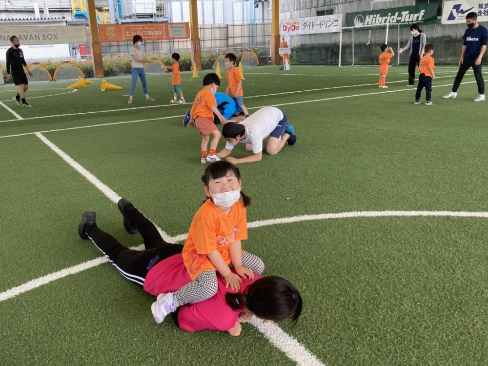最後は、ミニゲームを実施し。親子対決では親チームに負けまいと、子どもたちが一生懸命にボールに向かう姿は頼もしかったです。