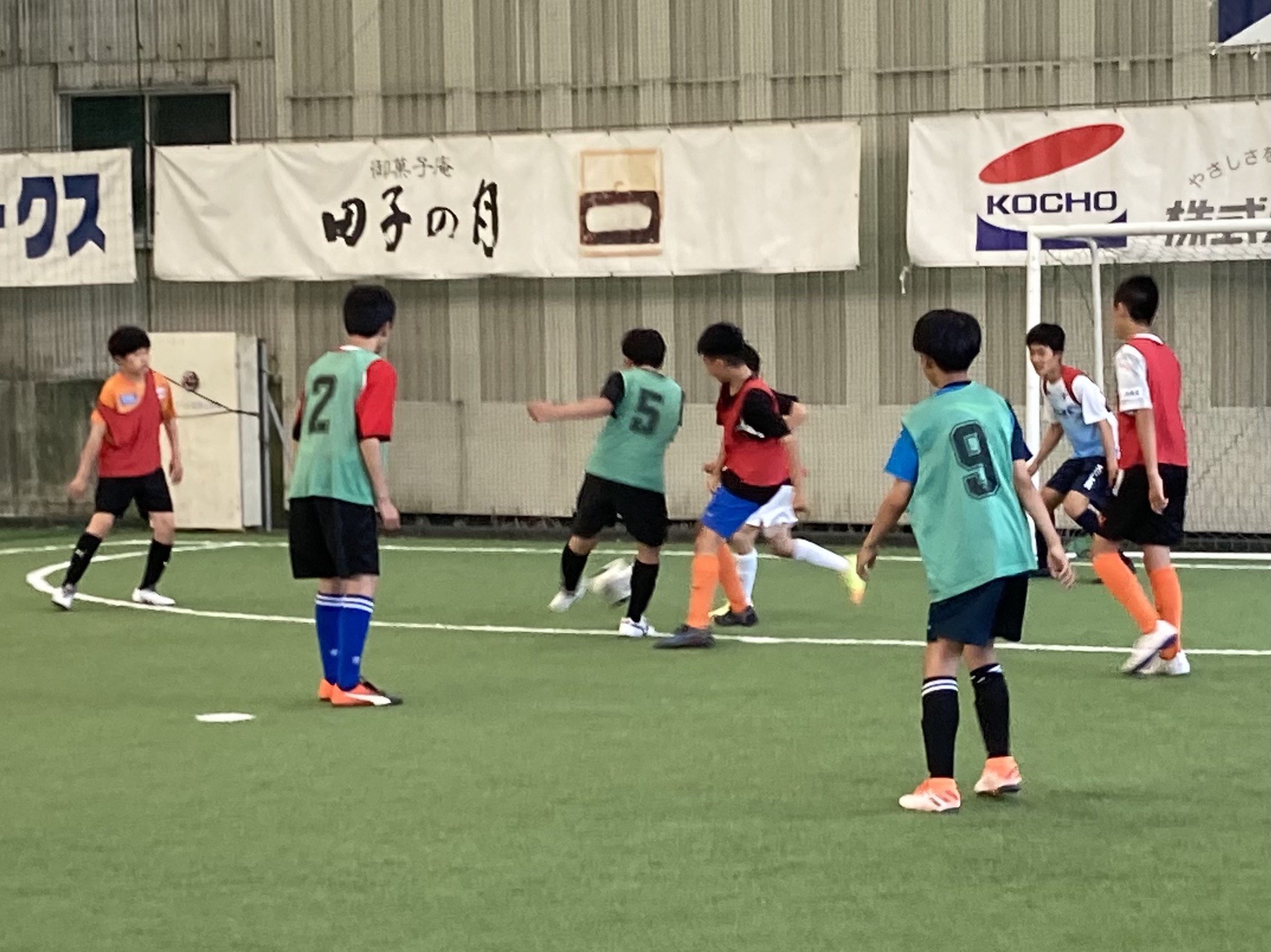 今回のテーマは「パス&コントロール」。全体でウォーミングアップ、ストレッチの後、トライアングルパスを行いました。初めは、動きながらのコントロールが安定しない場面も多かったのですが、回数を重ねていくうちに、次のプレーを意識したコントロールができるようになりました。次のトレーニングは、相手がいる中でプレーできるかの確認。3対1や3対1+3対1、最後はミニゲームを行いました。タイミング良く動き出し、ゴールへ向かうプレーが多かったのが印象的でした。