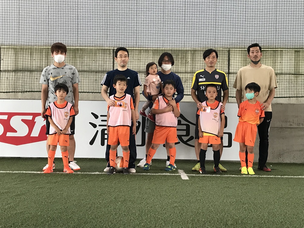 最後はスクール生とお父さんチームに分かれての試合です。いつもの練習の成果を出そうと果敢に攻めたスクール生チームも頑張りました。しかし、さすがのお父さんチームは巧みなパスワークを駆使し、たくさんのゴールを決めていました!試合は勝ったり、負けたりの素晴らしい試合が多かったです!