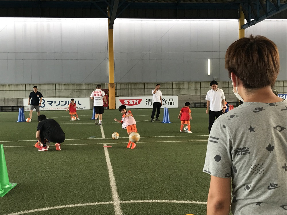 6/12(日)エスパルスドリームフィールド清水にて、「親子うんどう教室」を実施しました。年中~小学2年生のスクール生とお父さんを中心に参加しました。