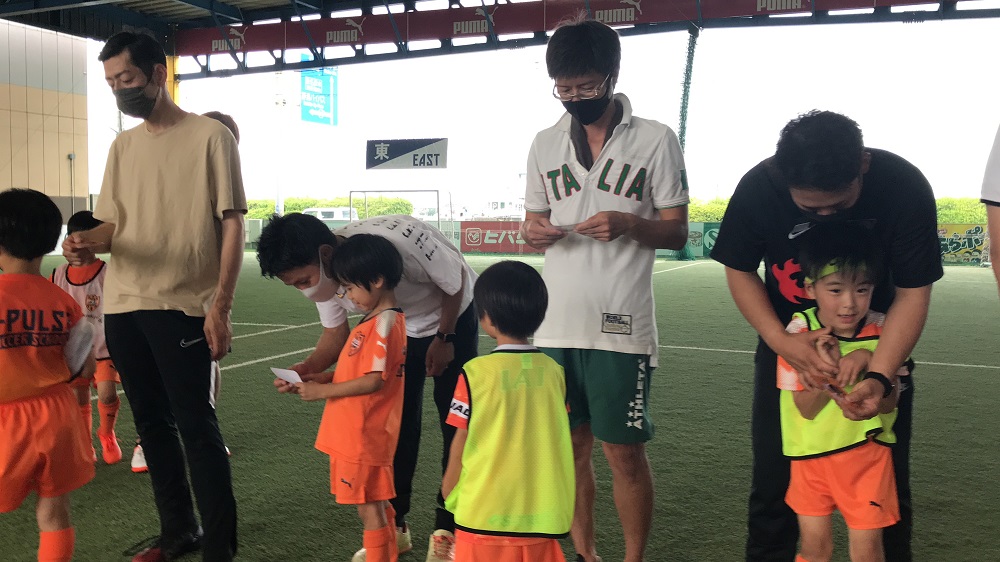 運動教室の終わりには、父の日が近いこともあり、親子写真入りの「肩たたき券」をサプライズでプレゼントしました!親子で嬉しそうに寄り添う姿が見られ、我々コーチ陣も感動しました。