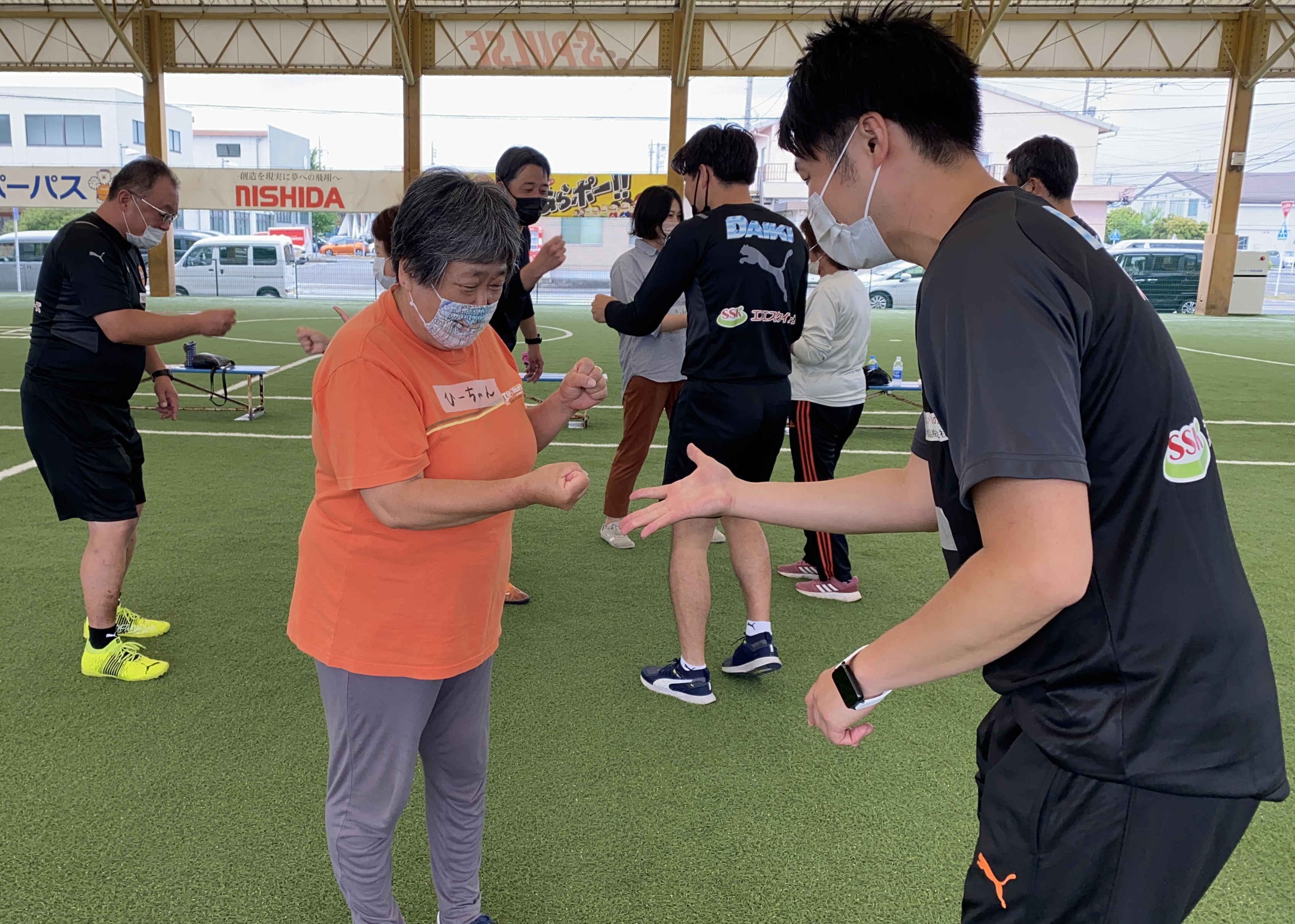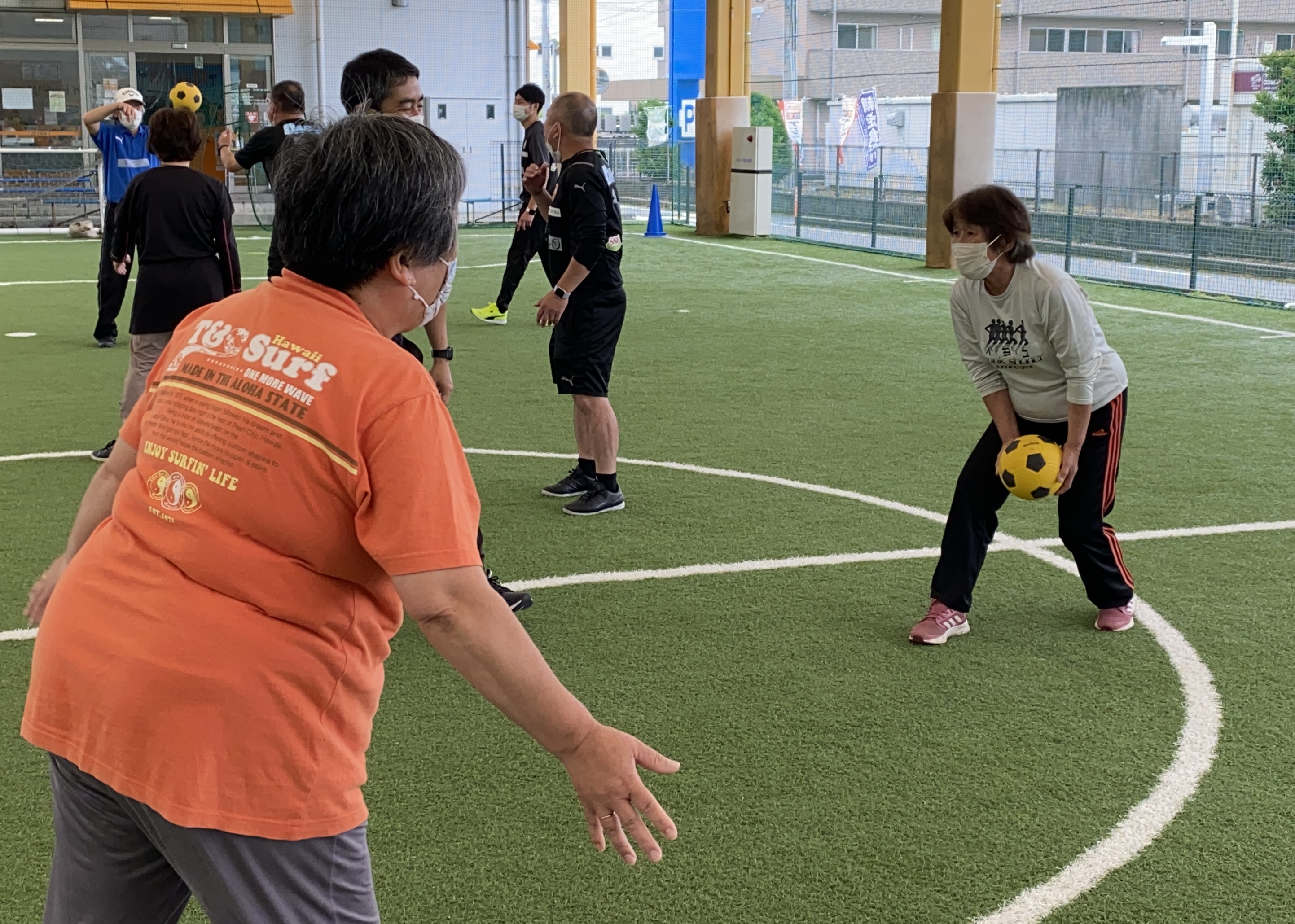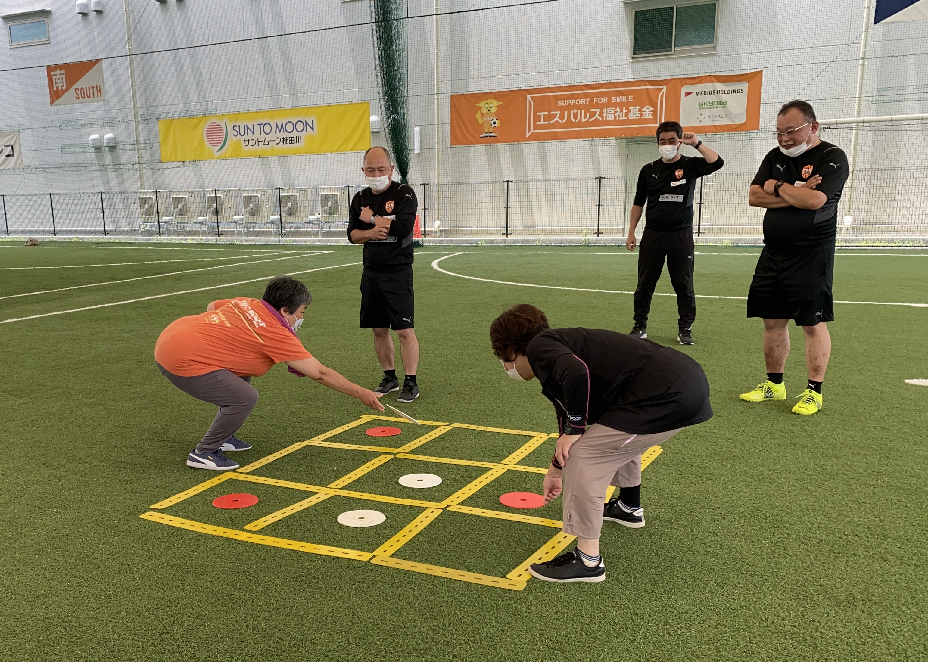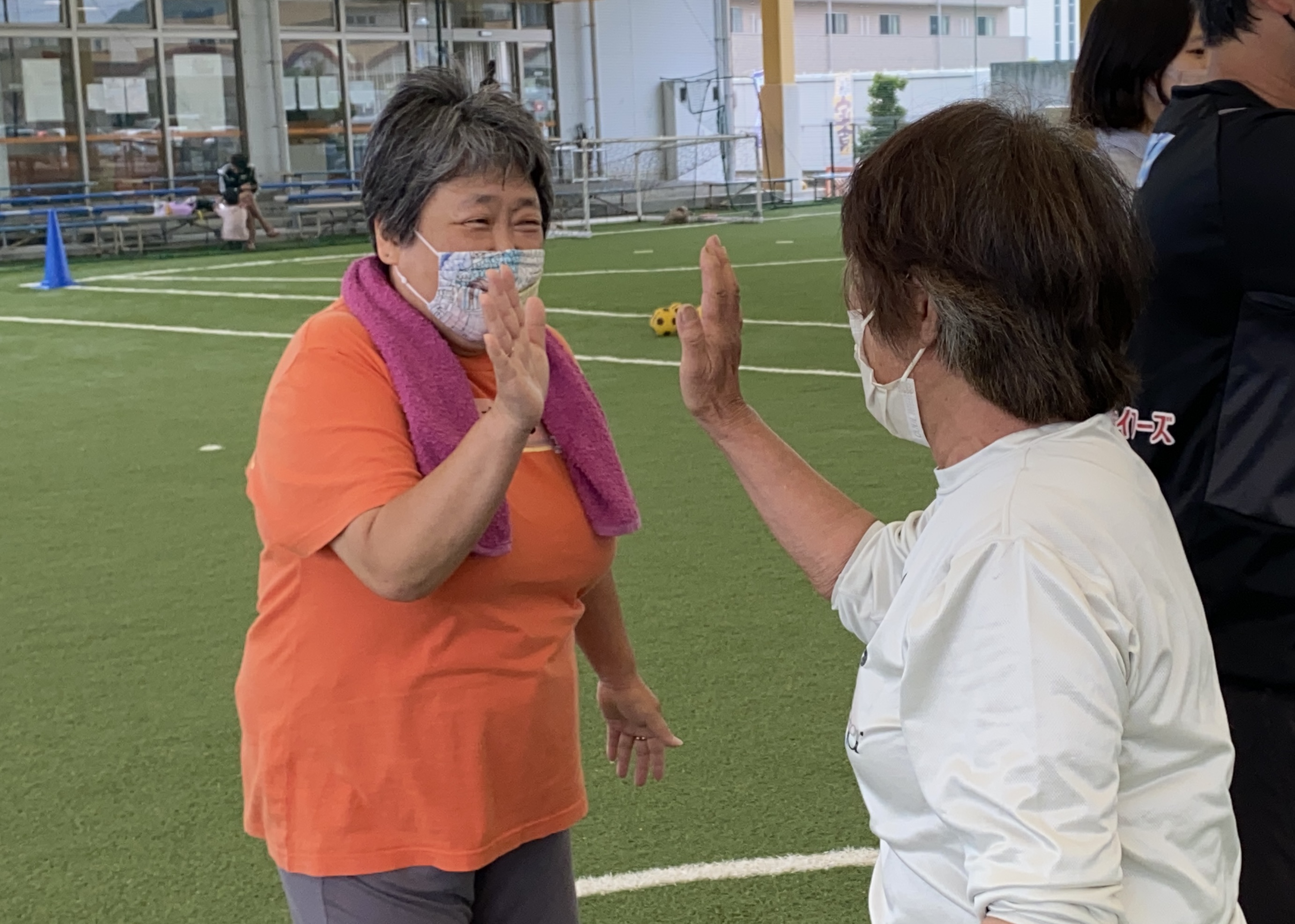 最後はコーチ陣と一緒に『ウォーキングフットボール』の試合をゆっくり行い、和気あいあいとハッピーな活動となりました。