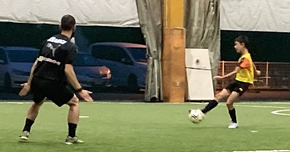 タイミング良く空いているスペースにボールとゴールが見える身体の向きを意識しボールを受け、シュートを打つことを繰り返しトレーニングし、難しい角度でも工夫をしながら挑戦しました。