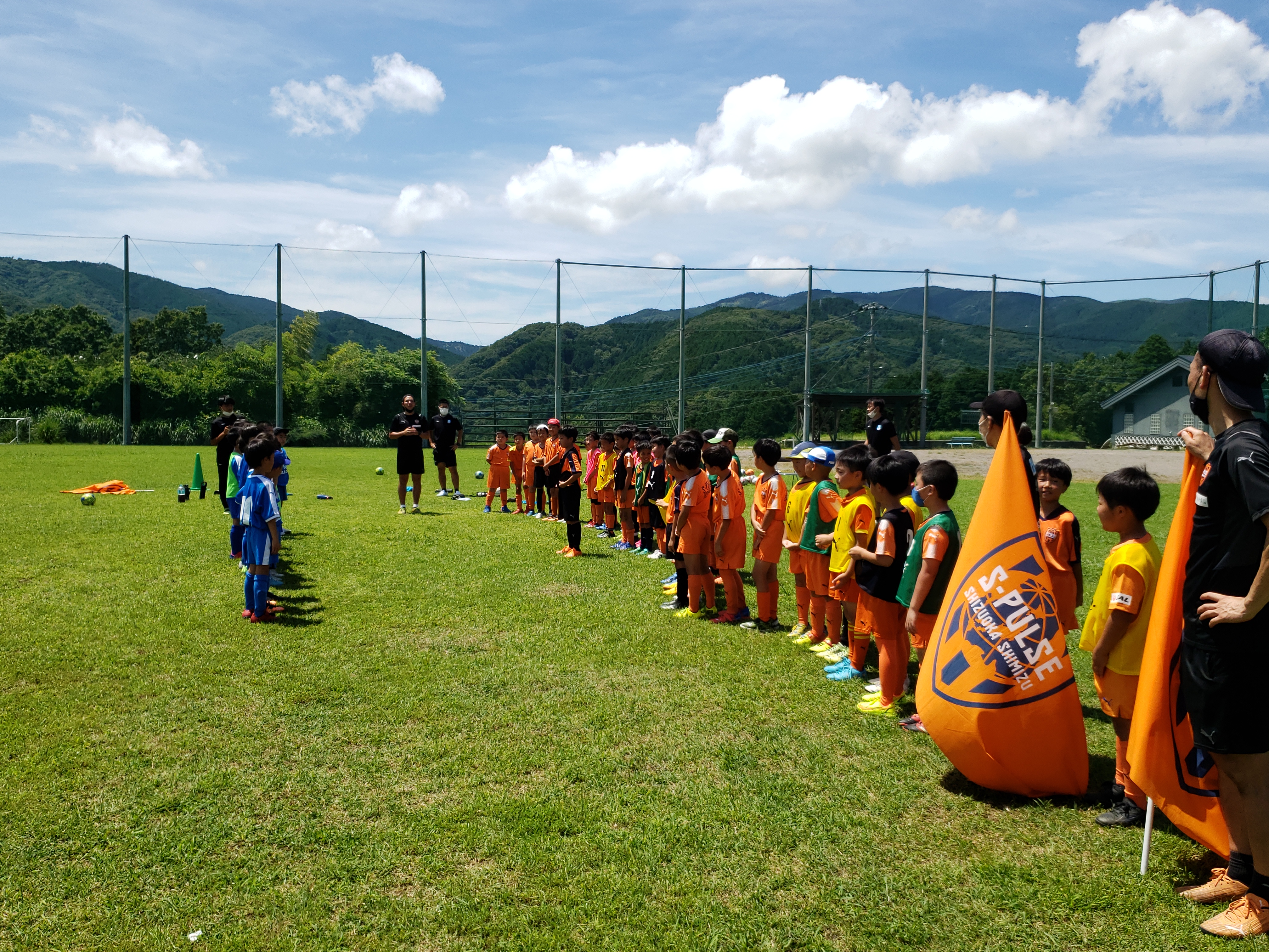 エスパルスサッカースクールからは、駿東エリア(駿東・伊豆・沼津・御殿場)のスクールに通う小学1~4年生、75名が午前、午後に分かれ参加しました。