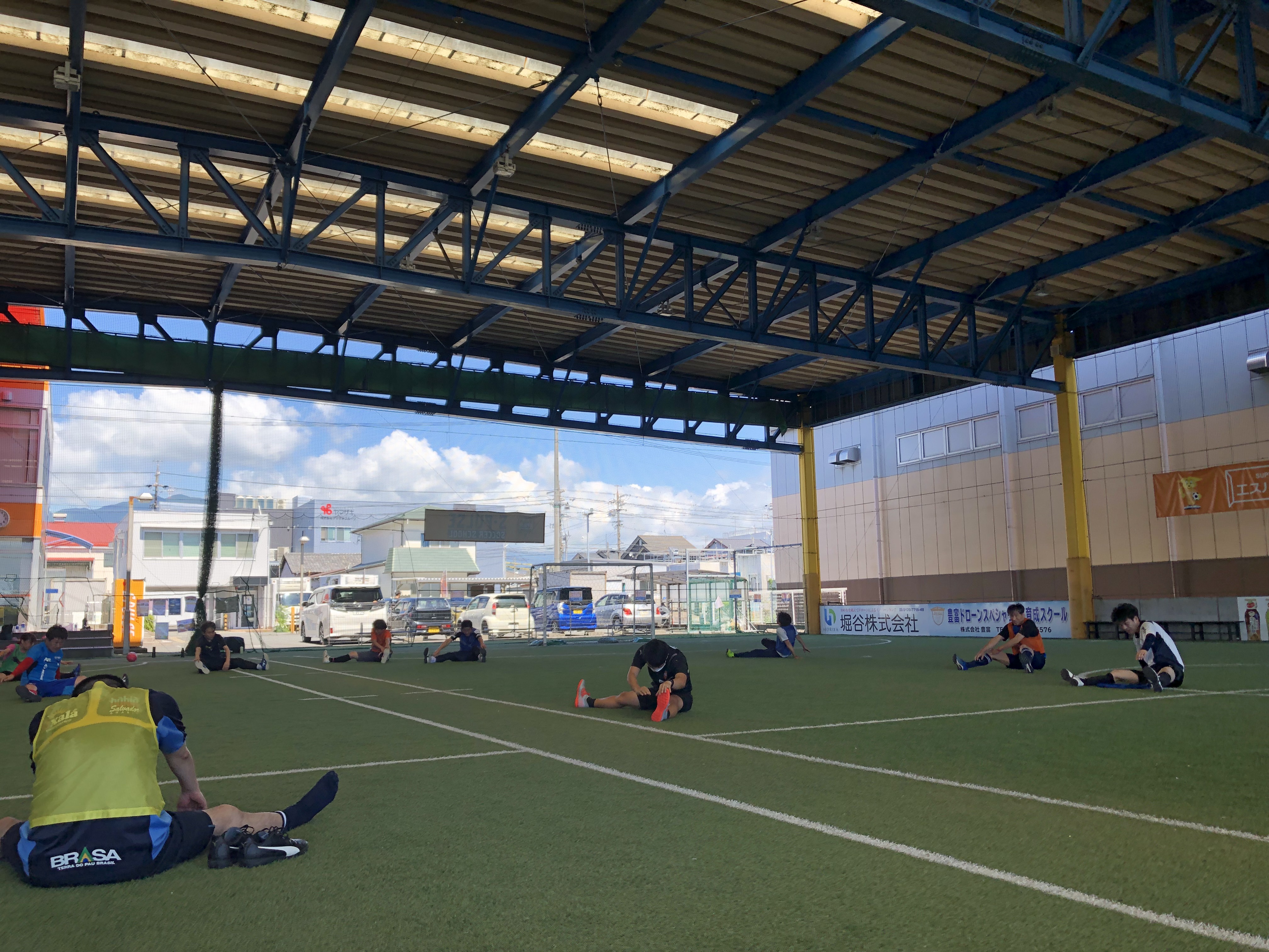 今シーズン4回目の開催。夏真っ盛りです!朝の活動とはいえ、気温が高く暑い!しかしながら、ここエスパルスドリームフィールド清水は屋根があることで直射日光を回避できるだけでなく、この日は海からの心地よい風がむしろ気持ちのいいくらいのコンディションを作り上げておりました。
