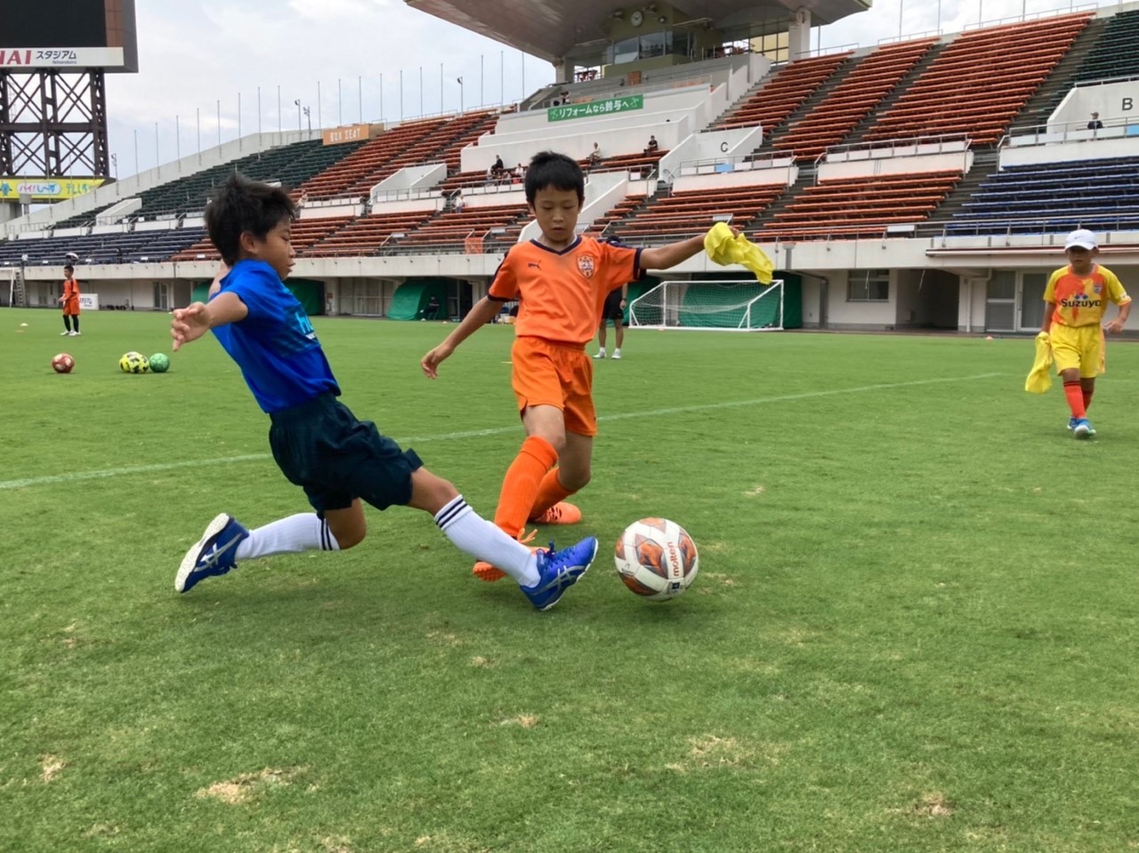 2日目は、IAIスタジアム日本平で通いキャンプ!雷雨の予定でしたが、あこがれの選手たちがプレーしているIAIスタジアム日本平で子どもたちの願いが届いたのか涼しくとても理想的な環境で2日目をスタートすることができました。