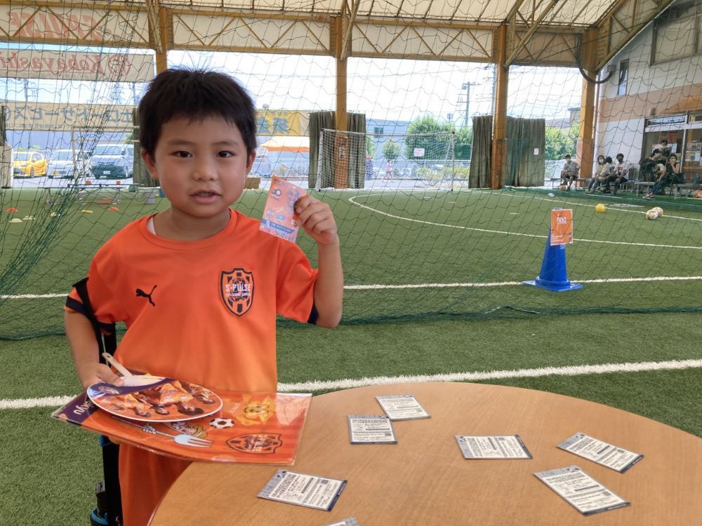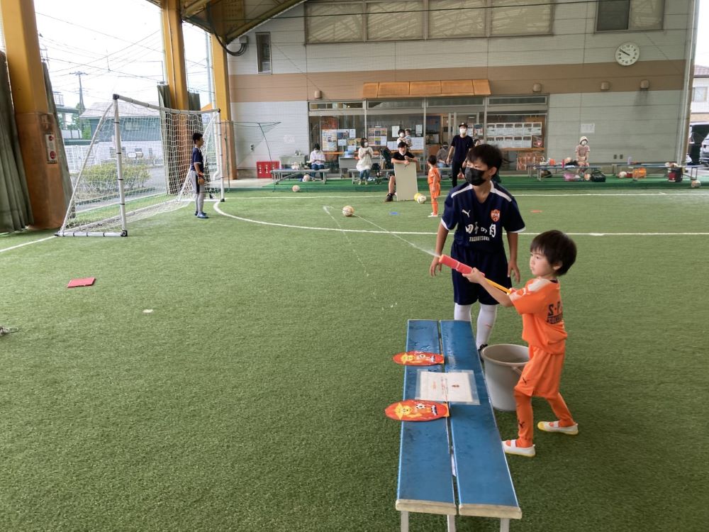 コート1面では試合形式のゲーム大会。保護者の声援もあり、白熱した試合が繰り広げられました。もう1面は昨年度から刷新された、アトラクションコート。PK対決、キックターゲット、サッカーゴルフ、フリーキック、水鉄砲と内容も盛りだくさん。物販ブースでは、特別価格の田子の月お菓子セットや、スクールオリジナルタオルマフラーの販売など、夏祭りの雰囲気に華を添えました。