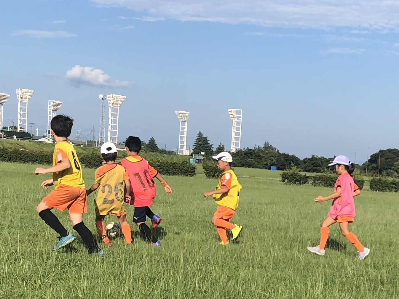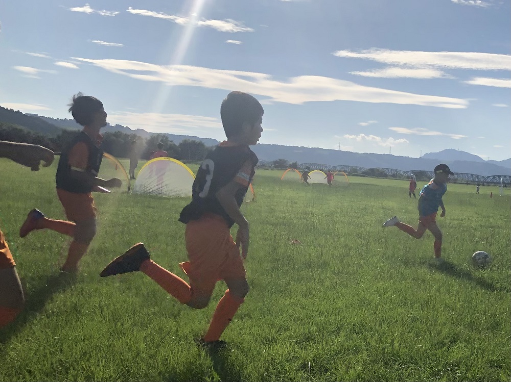 8月19日に島田大井川緑地公園 横井サッカー場グラウンドにて『クアトロゲーム』を実施し、藤枝エリア(藤枝・榛原・相良・島田)1~6年生15名の選手たちに参加いただきました。