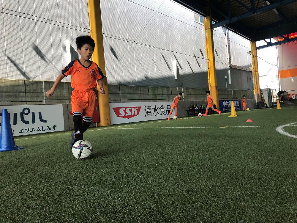 今回は『奪われないドリブル』をテーマに行いました。はじめからボールを使い、ドリブルのドリルトレーニングを行いました。コーンを相手に見立て、相手との距離感、ボールの置きどころや運び足、軸足の使い方などを細かく選手に伝えました。ドリルトレーニングは二種類行いましたが、一つ一つのセッションに大事なポイントだけ伝えることによって、選手たちも頭の中で整理し意識し、実際の試合でどのような状況なのかをイメージしながらプレーする選手が増えました。