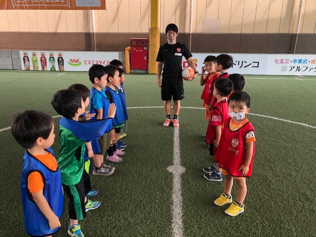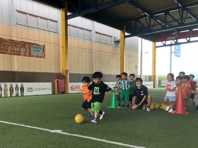 まだスクール生ではないお子様に、エスパルスサッカースクールのトレーニングを体験してもらうこと、また、保護者様にスクールの特徴などを知っていただくことを目的に行いました。当日朝は雨もパラついておりましたがそこは心配御無用のエスパルスドリームフィールド。屋根付きなので安心です!問題なく行えました。