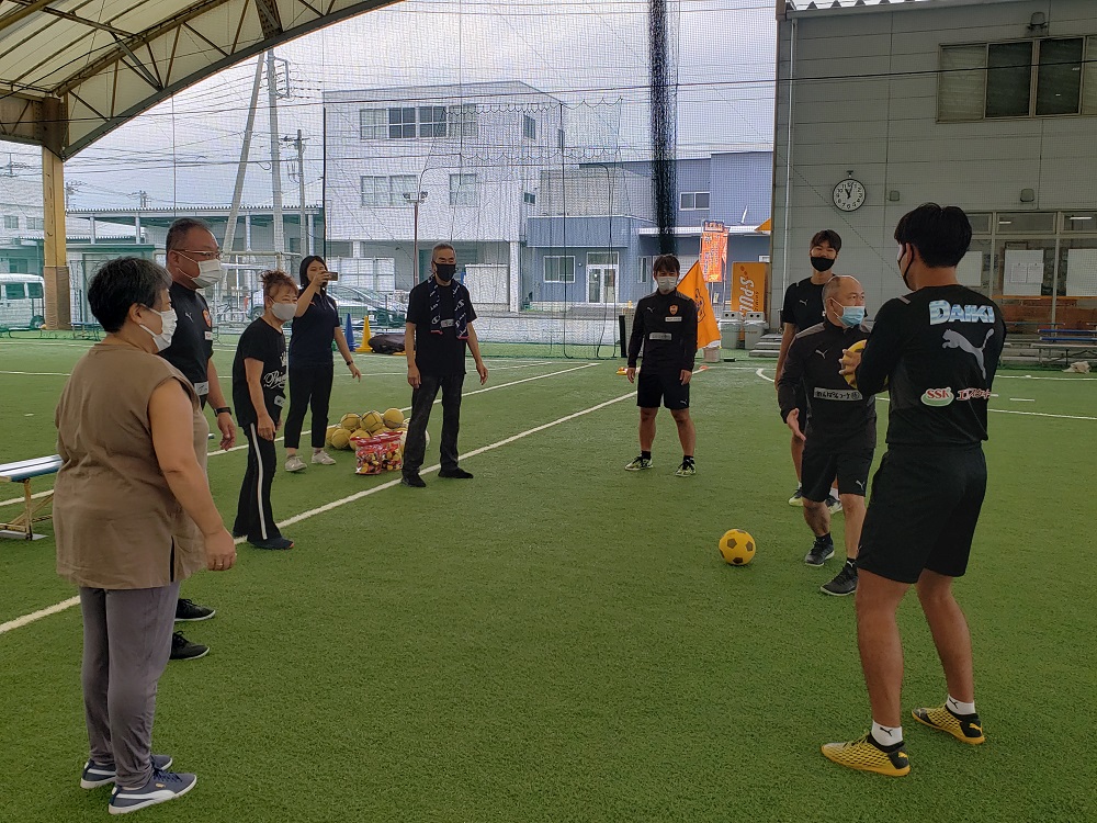最後はコーチ陣と一緒に『ウォーキングフットボール』の試合をゆっくり行い和気あいあいとハッピーな活動を行うことができました。