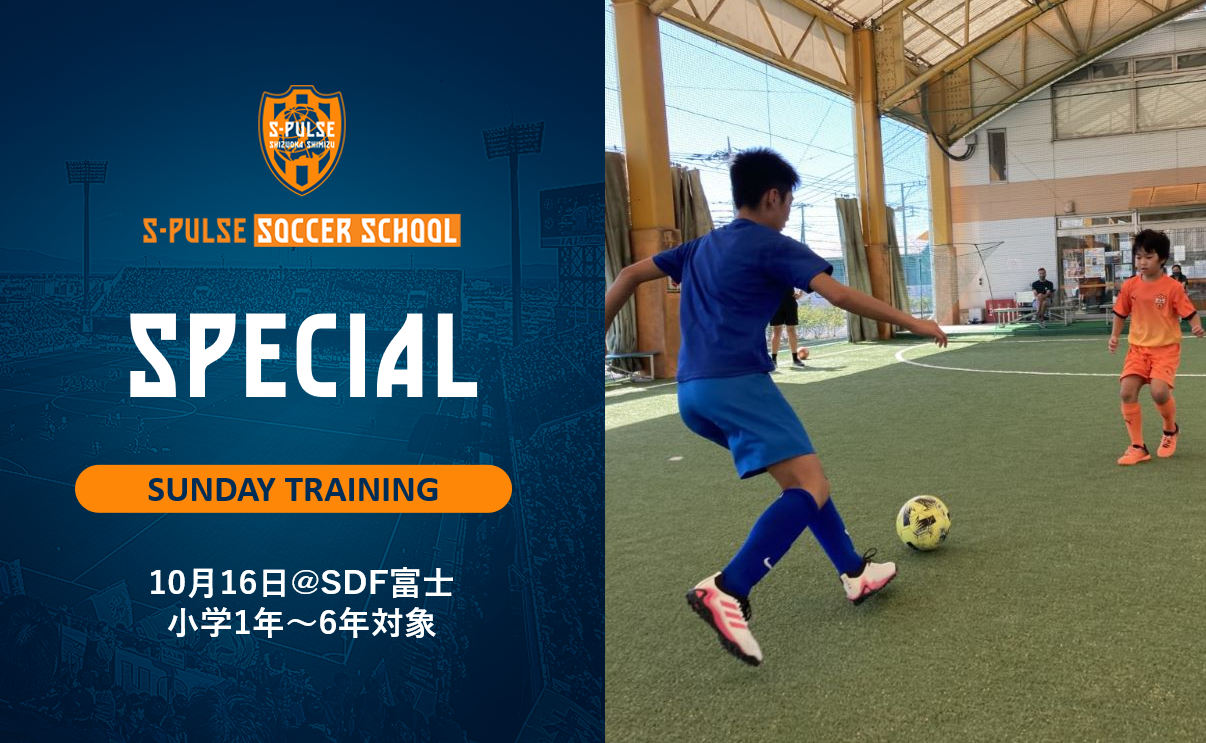 10月16日(日)にエスパルスドリームフィールド富士にて、小学1年~6年生を対象に「Sundayトレーニング」を開催いたします。つきましては、参加者を募集いたしますので、以下の通りお知らせします。