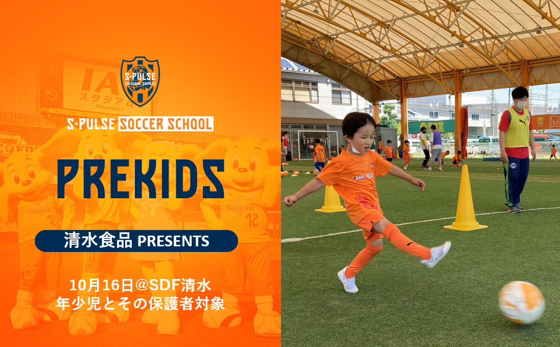 清水エスパルスは、10月16日(日)にエスパルスドリームフィールド清水にて、年少児のお子様1名と保護者1名の親子を対象とした『清水食品presentsプレキッズ 親子で一緒に年少さんサッカー教室』を開催いたします。