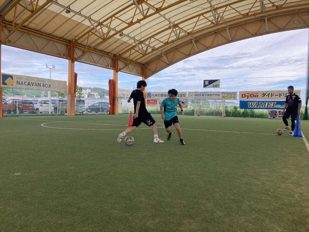 1対1、2対2のトレーニングでは、攻撃の際のカラダの向き・ボールの持ち方、守備の際の守り方など自分自身で考え行動する姿が見受けられました。