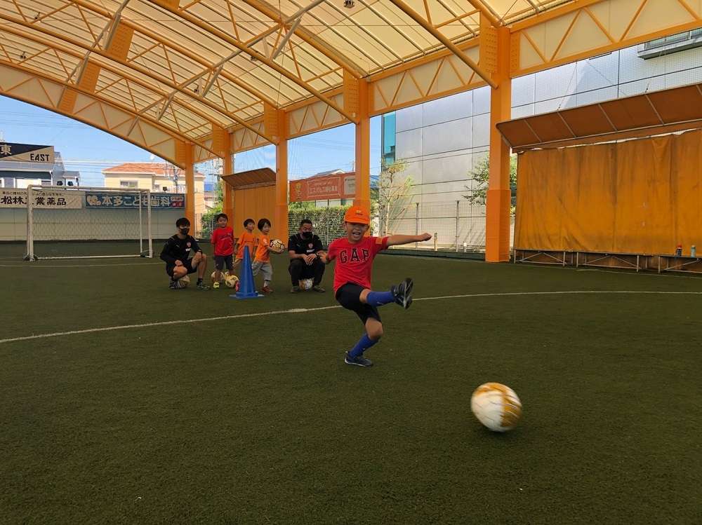 次は、子どもたちの番です!『シュート』をメインに、「ボールのどこを」「足のどこで」蹴るのかを考えながら、何度も繰り返し、なんと・・・