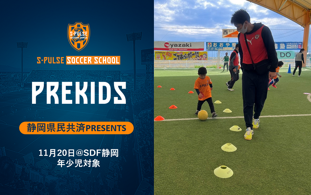 清水エスパルスは、クラブパートナーである静岡県民共済さまご協力のもと、11月20日(日)にエスパルスドリームフィールド静岡にて、年少児の子ども1名と保護者1名の親子を対象とした『静岡県民共済 presents 親子で一緒に年少さんサッカー教室』を開催いたします。