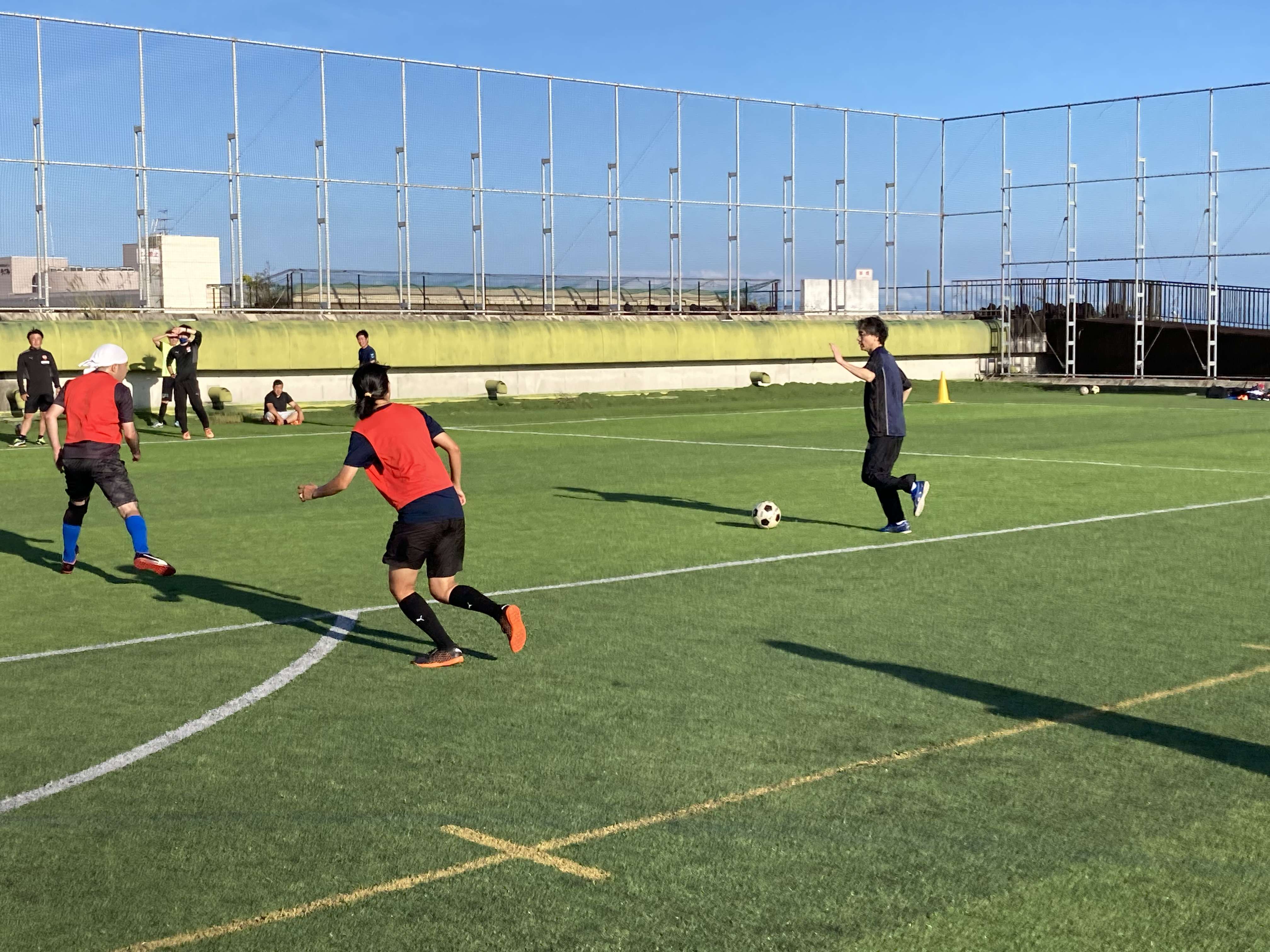 試合は、2チームで8vs8の12分ゲームを各スクール混合で行い、自由に選手交代をしたり、途中でチームを変えたりしながら1時間半ぴっちり汗を流しました。