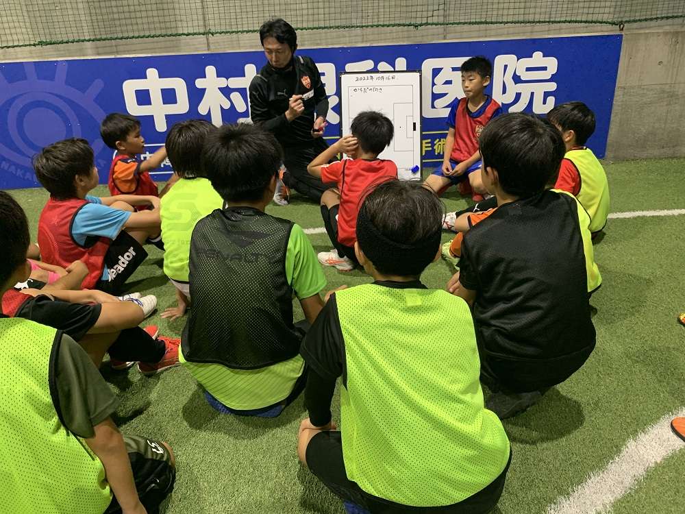 プレー後には、今回もホワイトボードを使って振り返りを行いました。今日取り組んだことを思い出し、再確認することは今後のトレーニングにきっと生かされるでしょう。