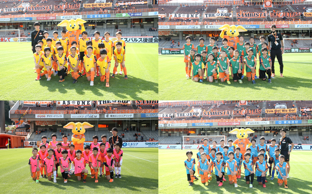 IAIスタジアム日本平にて、10月22 日(土) ジュビロ磐田戦では、4年生前座試合を実施。10月29日(土)、鹿島アントラーズ戦にて、5年生前座試合を実施し、多くのスクール生に参加いただきました。