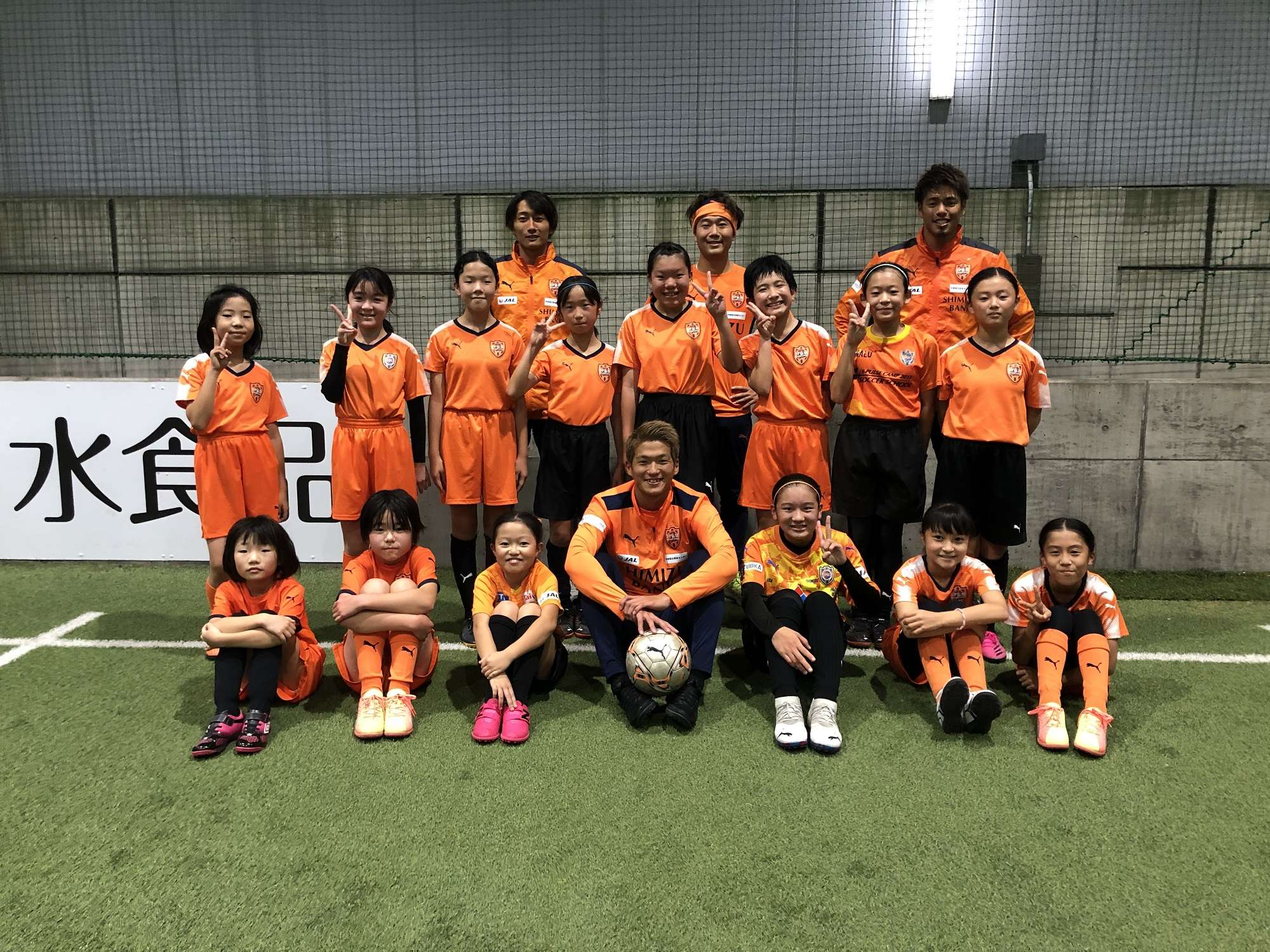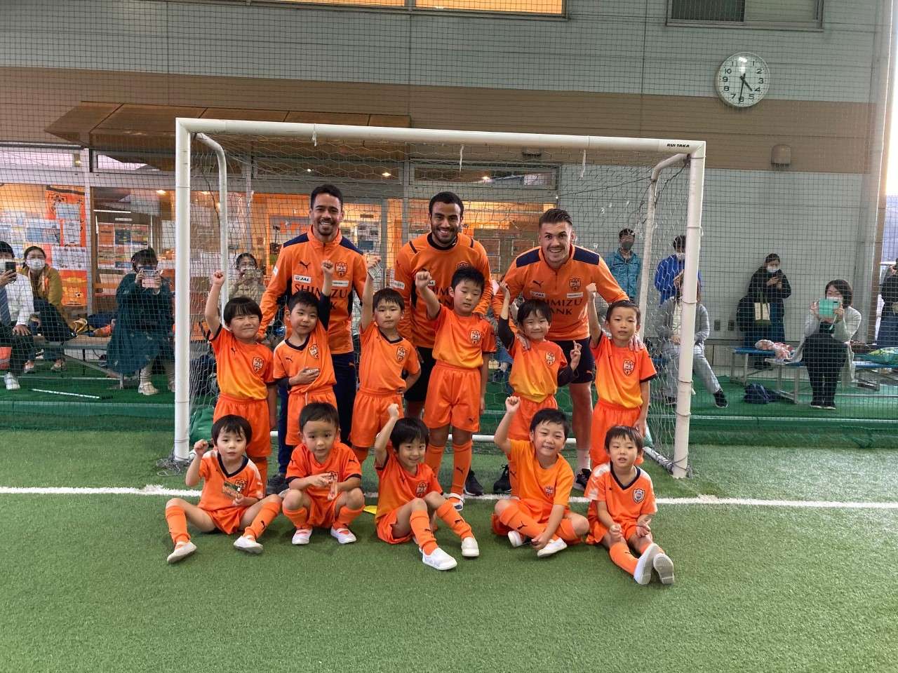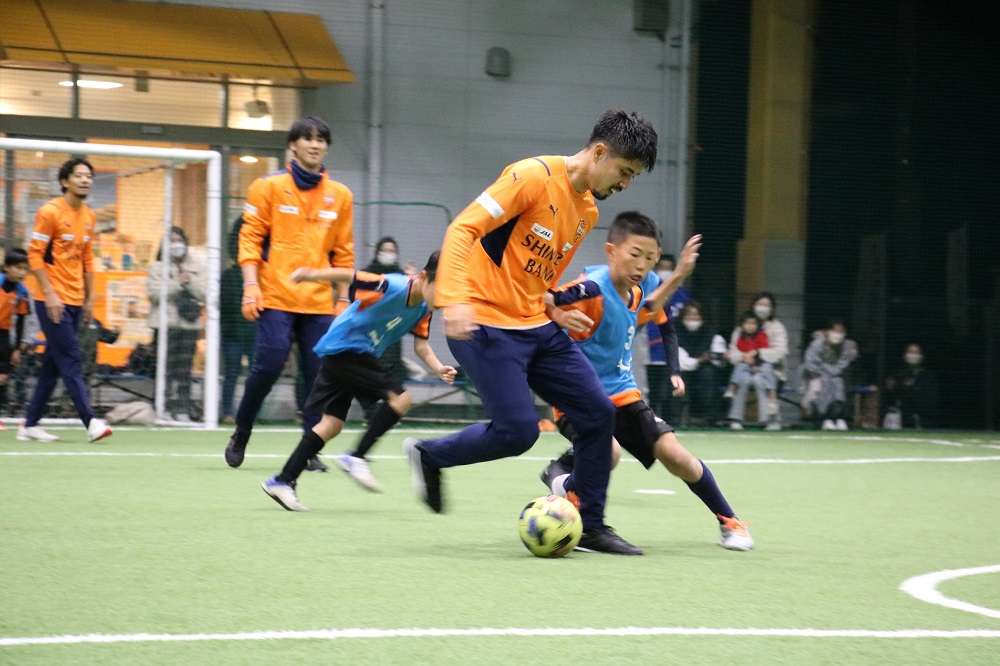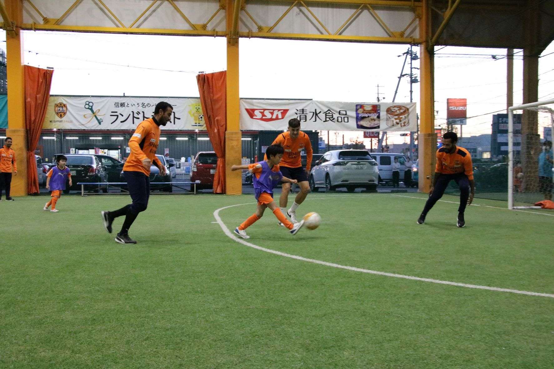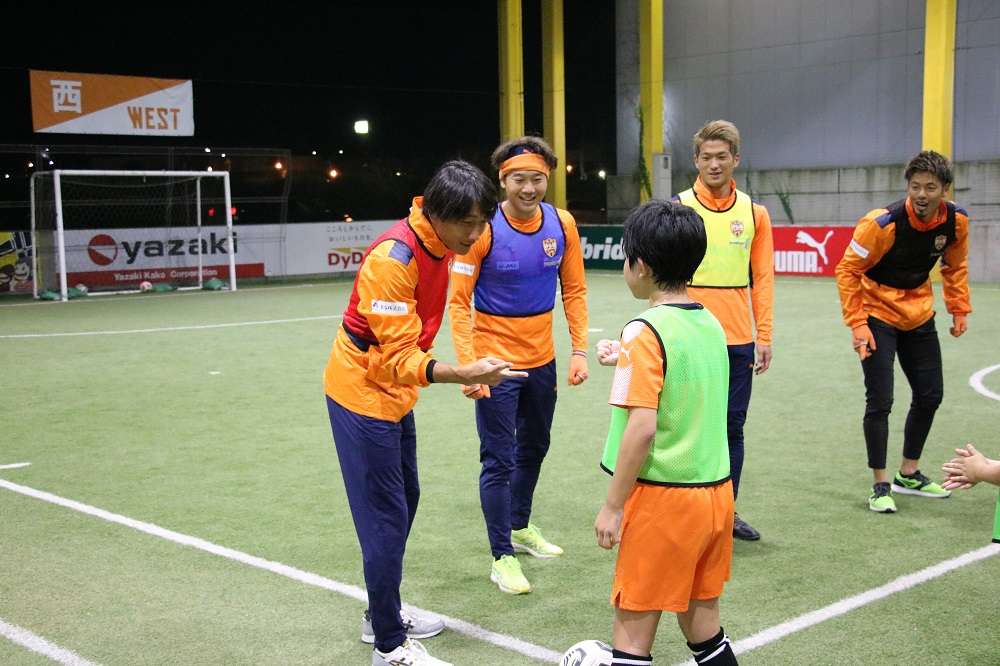 スクール生は、憧れの選手を目の前に、少々緊張気味の様子でしたが、パス交換をしたり、1対1の勝負をしたりと、サッカーを通して徐々に打ち解け、最後のゲームではたくさんの笑顔が見られました。