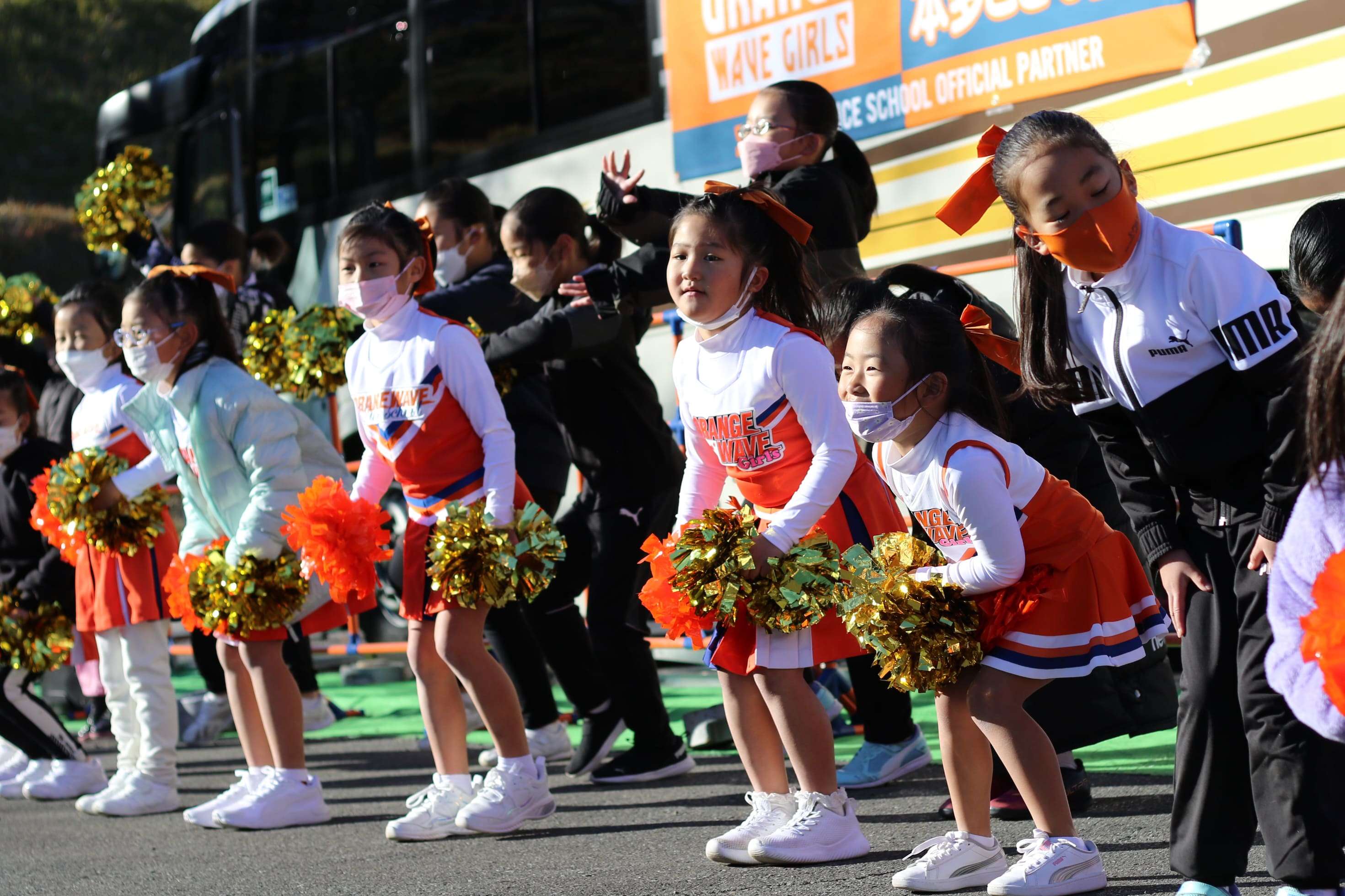 エスパルスダンススクール生は年中~高校3年生まで総勢100名が参加し、開会式でのオープニングアクトと丸勇交通さま大型バスの前でのフリーダンスパフォーマンスを行いました。