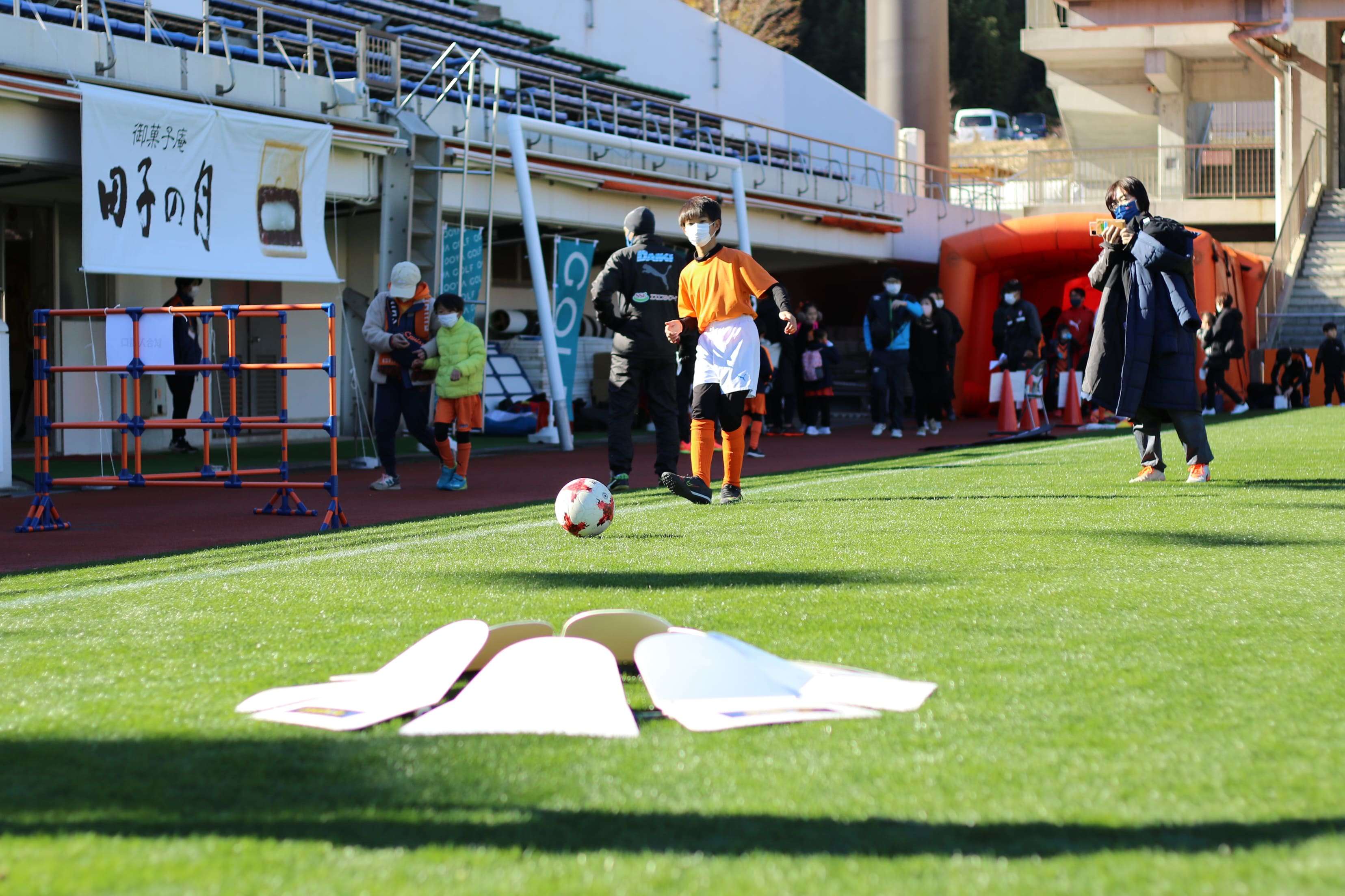 田子の月商品の即売会や、田子の月もなかスポーツパークサッカーアトラクションチャレンジラリーを開催。たくさんの親子に、「富士山頂キング」「スピードキング」「キックターゲット」「フットダーツ」の4つのサッカーアトラクションに挑戦いただきました。