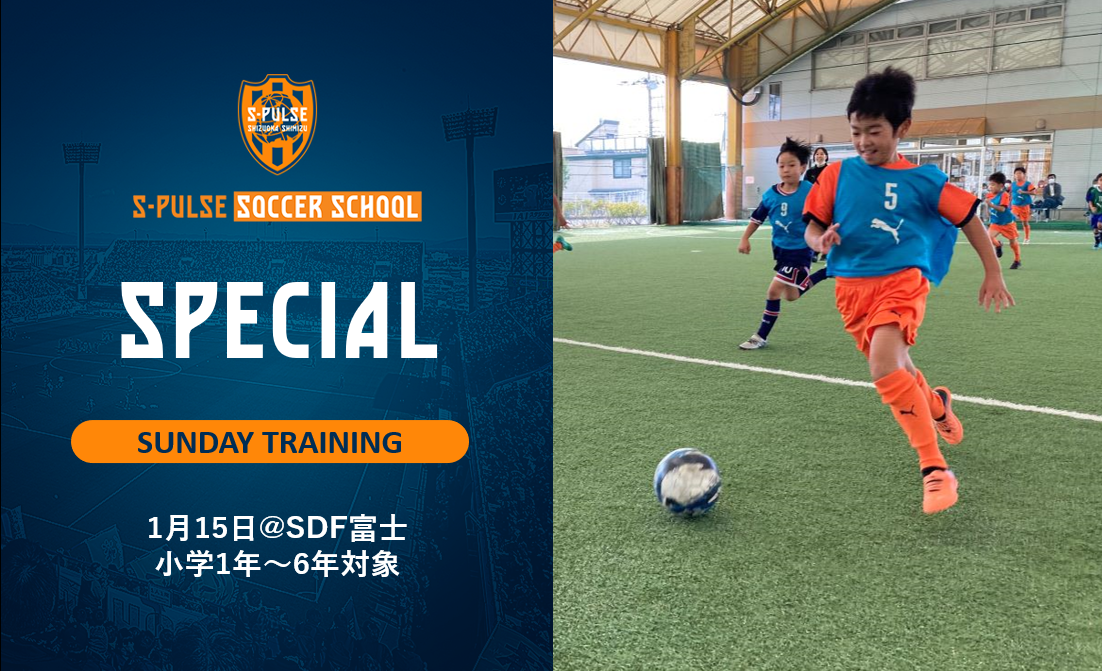 1月15日(日)にエスパルスドリームフィールド富士にて、小学1年~6年生を対象に「Sundayトレーニング」を開催いたします。つきましては、参加者を募集いたしますので、以下の通りお知らせします。