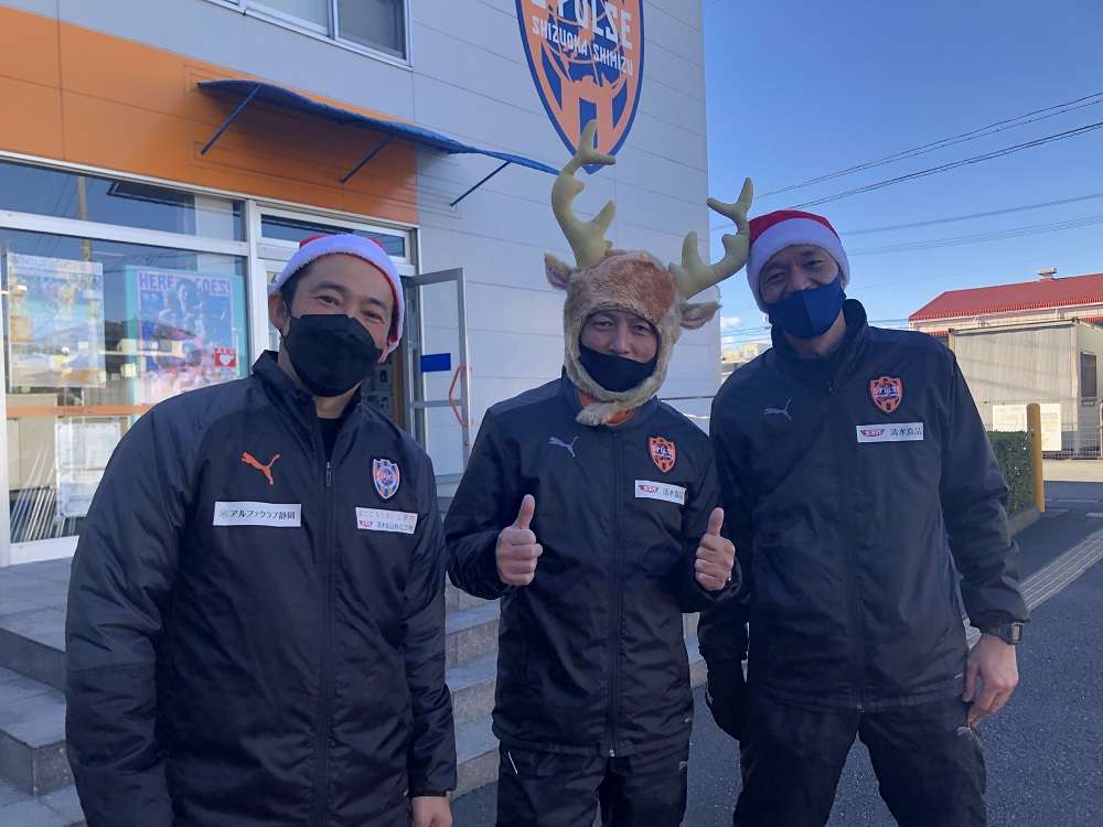 ① コーチ達がサンタとトナカイでお出迎え! ©︎︎︎S-PULSE