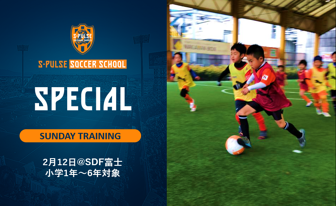 2月12日(日)にエスパルスドリームフィールド富士にて、小学1年~6年生を対象に「Sundayトレーニング」を開催いたします。つきましては、参加者を募集いたしますので、以下の通りお知らせします。