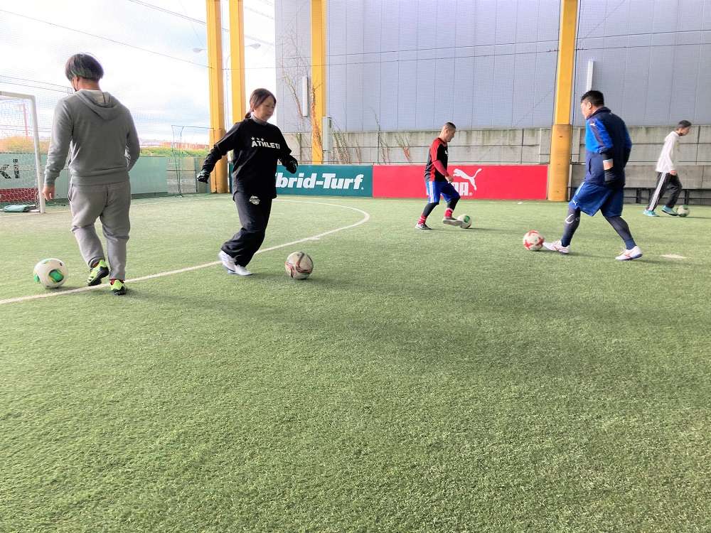 いつものように動的ストレッチから始まり、一人一つのボールでボールフィーリング、ドリブル、浮き球コントロール、ターンの練習へと流れるように行い、フィジカル、メンタル、テクニックの向上を図りました。