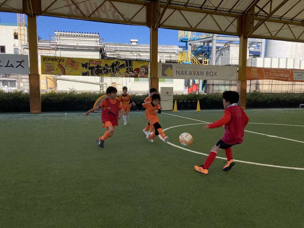 まずは4ゴールのミニゲームからスタート。狭いコートの中で、パスを上手く使いながら、常に「ゴール」を意識してプレーしていました。