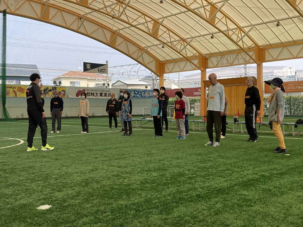 清水エスパルス藤枝エリアでは、3月17日(金)、エスパルスドリームフィールド藤枝にて、「ハッピーシニアプロジェクト」を開催いたしました。藤枝市役所のスポーツ復興課の皆さまのご協力もあり、当日は、60歳以上の方々11名に参加いただきました。