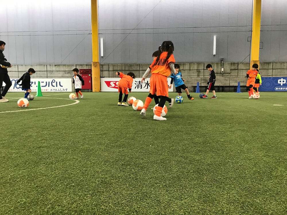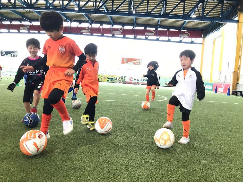 今回は『ドリブル』をテーマに行いました。キッズ年代に必要な様々な運動、ステップワークを入れながら、自分とボールだけでなく、自分と相手とボールの関係の構築するためのトレーニングを行いました。
