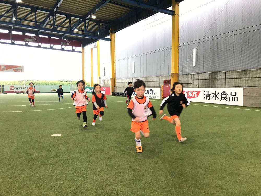 最後の試合は人数が多く、焦って蹴ってしまう選手もいましたが、相手をよく観てあいている場所を見つけながらドリブルをする選手も多くいたので、たくさんの成功体験を得ることができたのではないかと感じています。