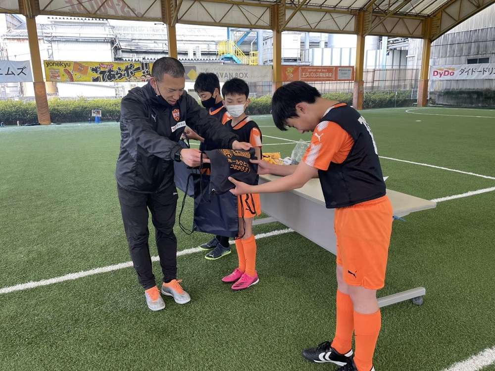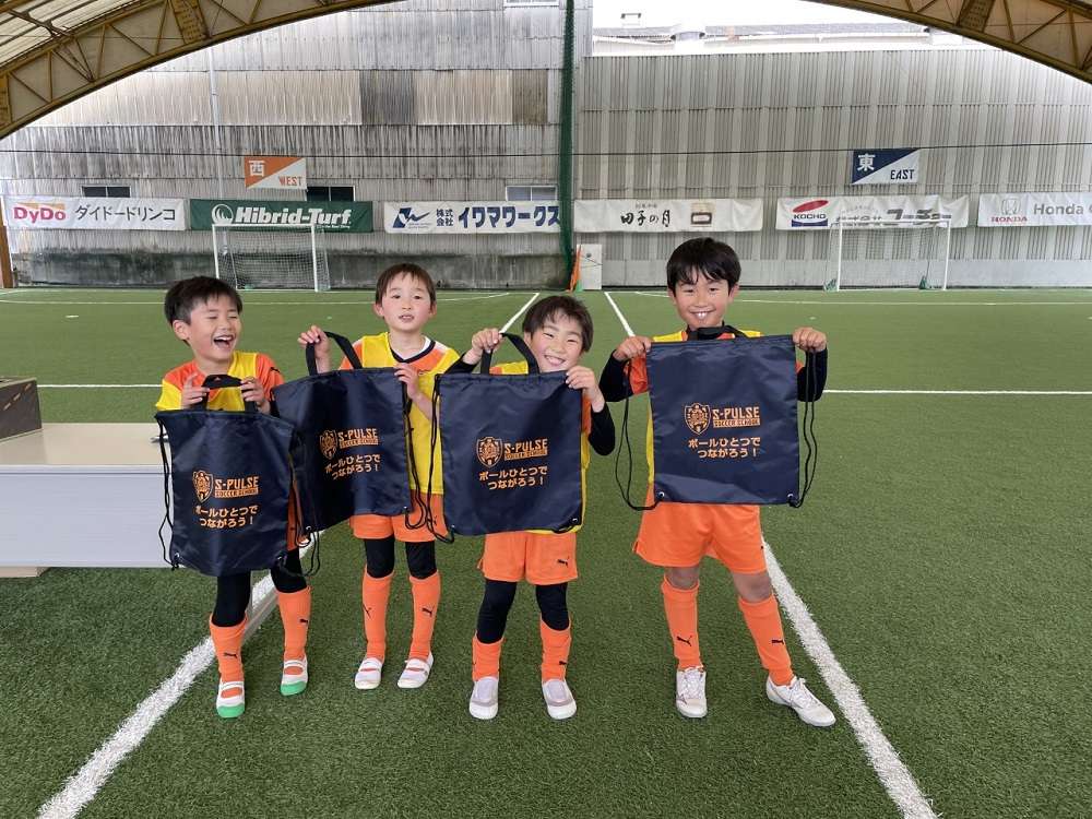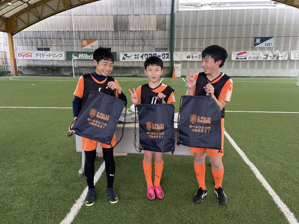 試合を終えた後は、お楽しみ抽選会。お目当てのエスパルスグッズを前に、ソワソワしながら、ドキドキ、ワクワクのスクール生。抽選会ではありましたが、全員が商品をゲットでき、笑顔がはじけました!