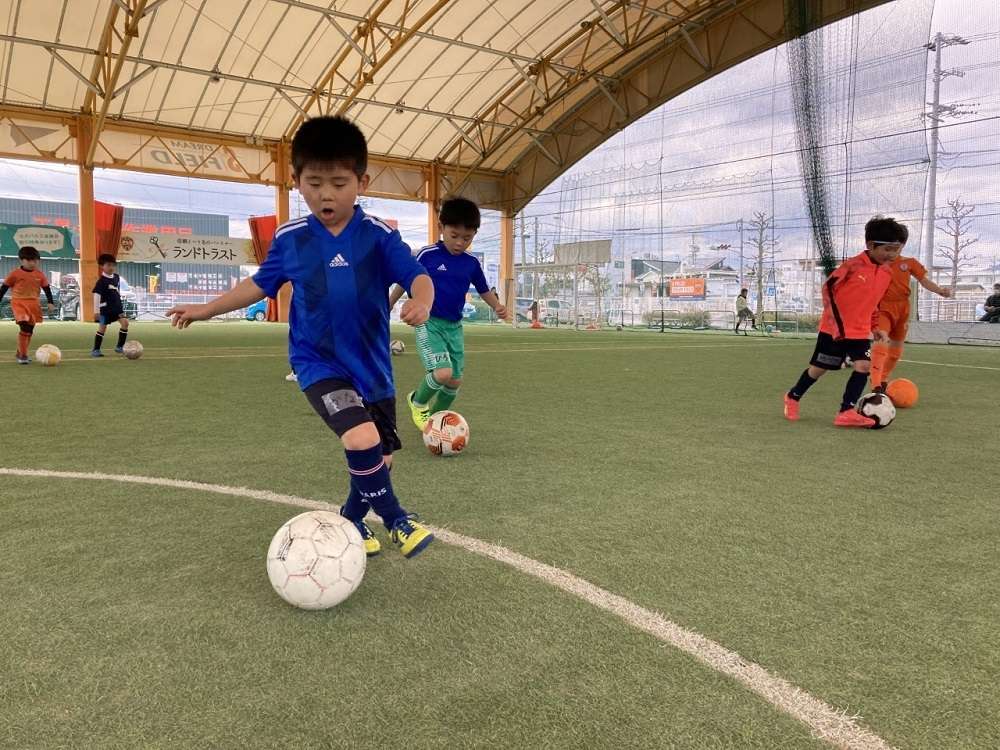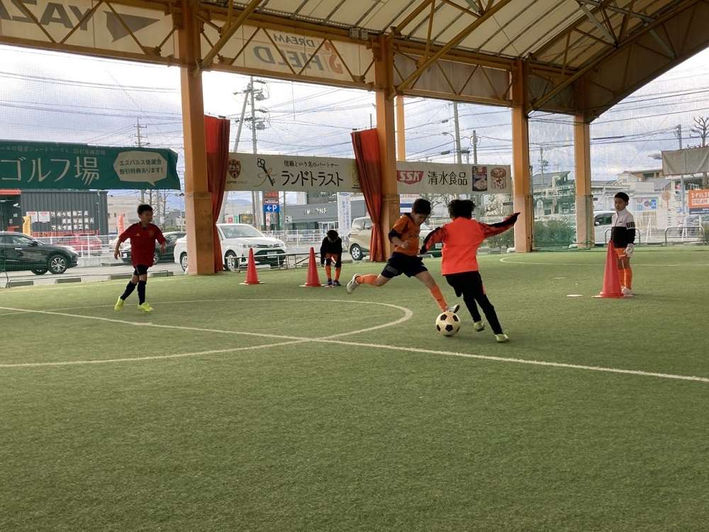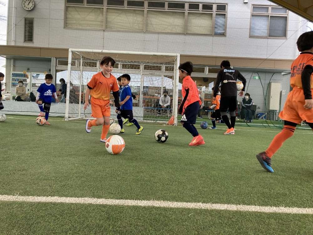 その後のドリブルドリルではボールに多く触りつつ視野を広げて、両足でボールを触ろうとする意識がたくさん見られました。