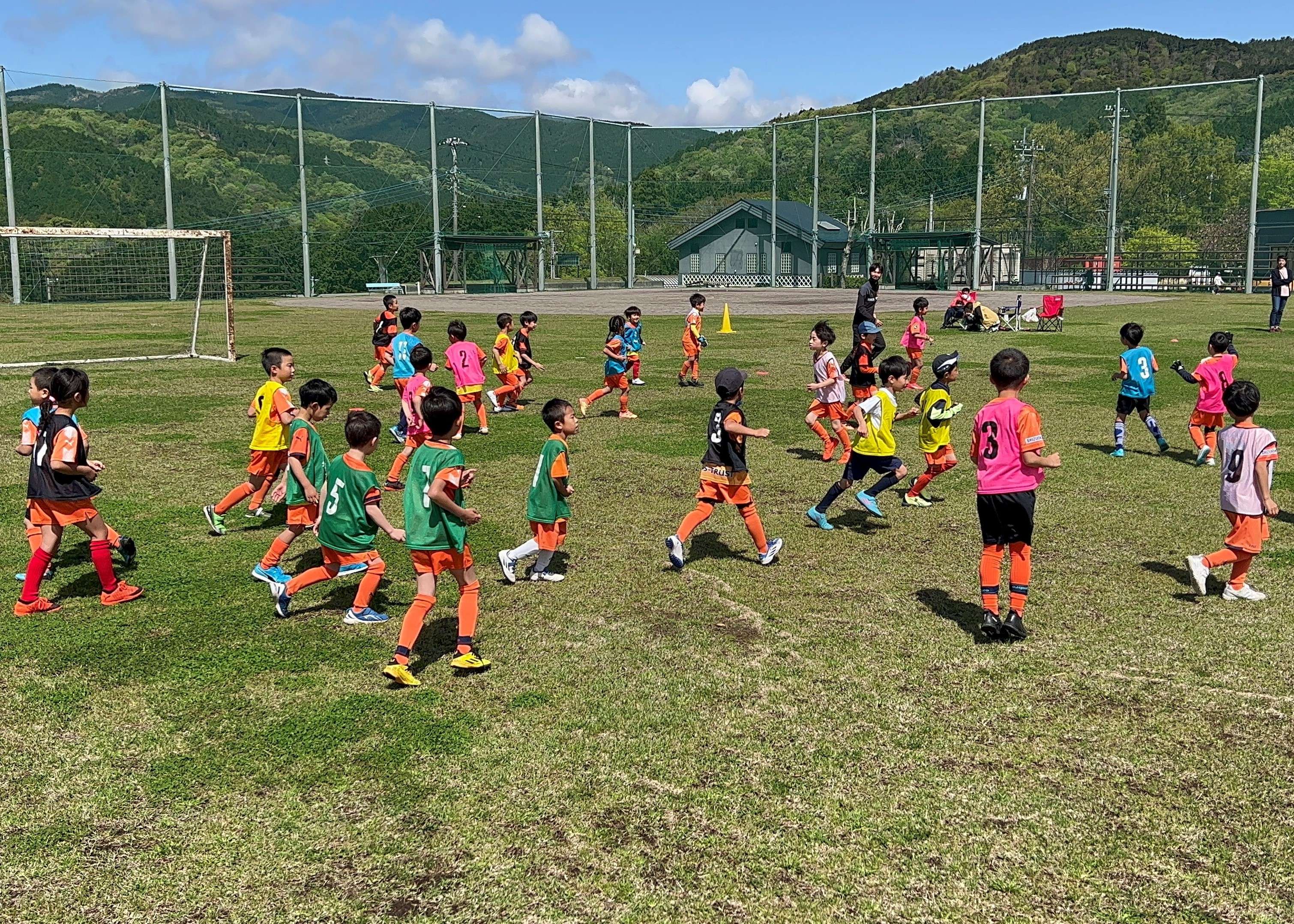 風が強く、強い日差しが照りつける中、駿東エリアの聖地・天城ふるさと広場に元気ハツラツなスクール生たちが集まりました。前日に降り続いた雨の影響で実施できるかどうか心配されましたが、水溜まりはなく、最高のグラウンドコンディションでこの日を迎えました。