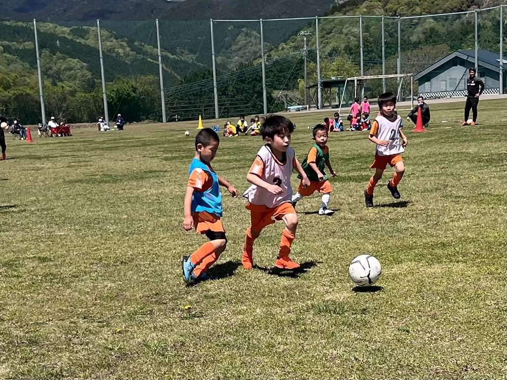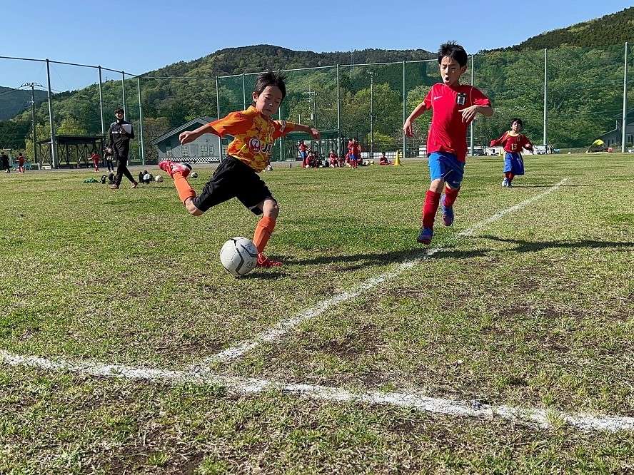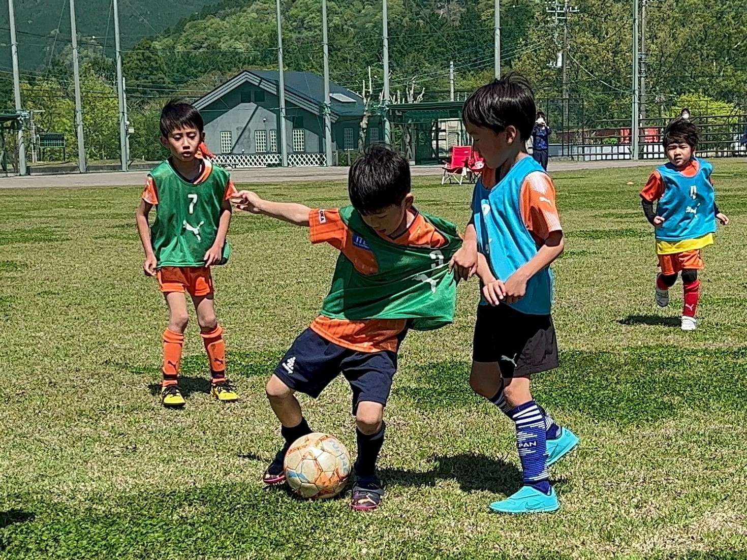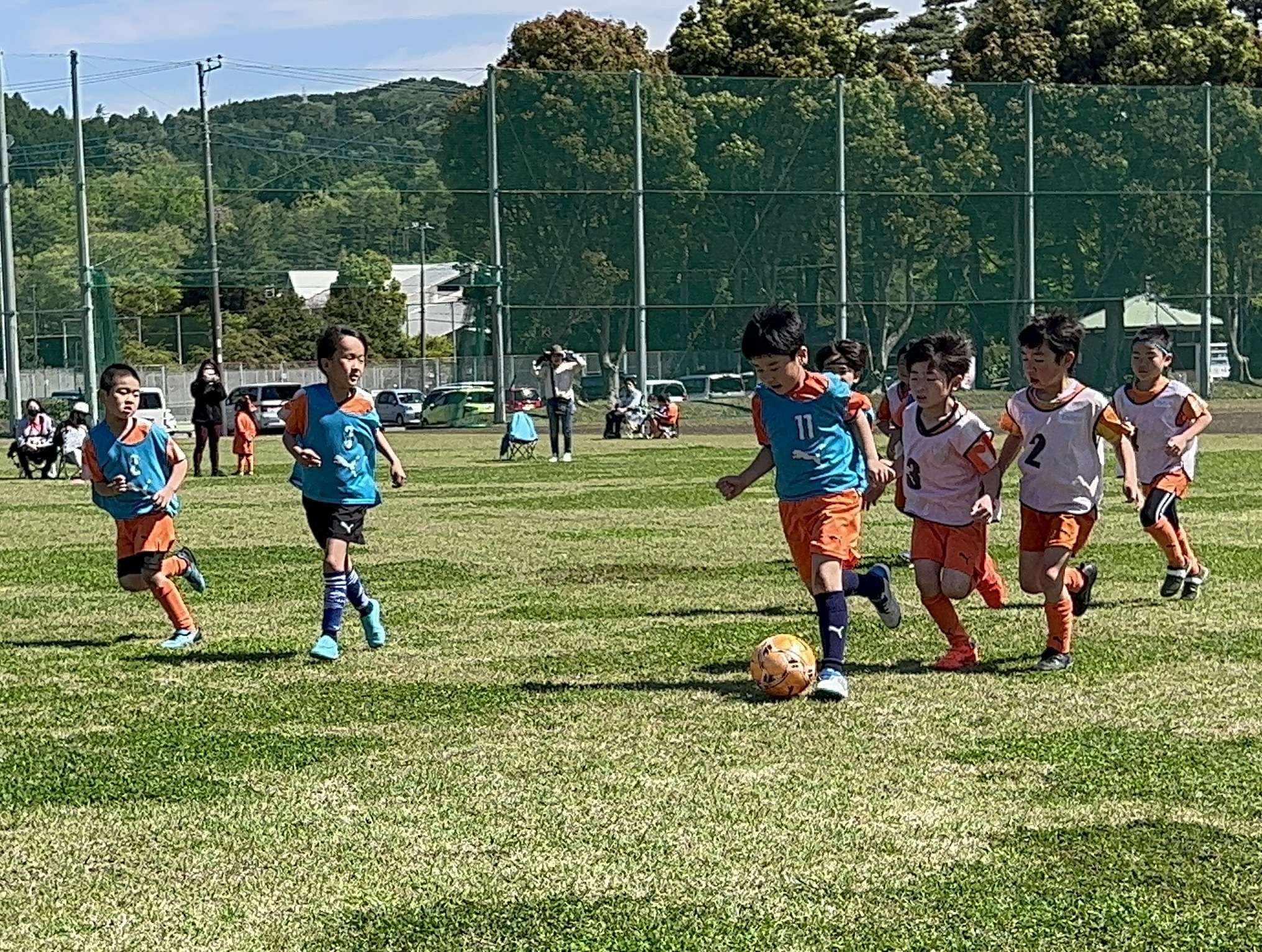 まず午前中に行われたのは『駿東エリア1、2年生交流戦』。青い空、開放的なロケーション、いつもとは異なる大きいグラウンドでの試合にスクール生たちのテンションは最高潮。勢いそのままにキックオフとなりました。