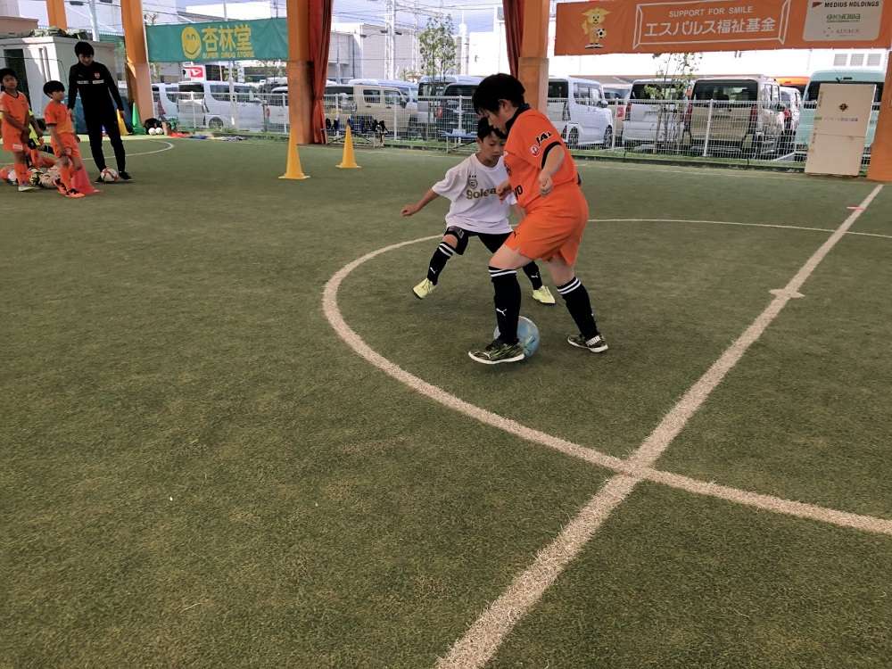 最後の試合では。ゴールへ向かうためにはどこにドリブルしたら良いのかを選手自らが判断して相手と駆け引きをする様子が見られました。