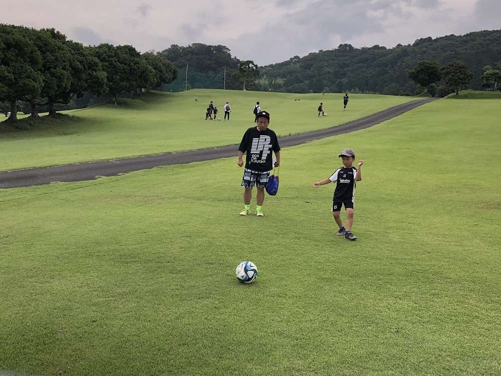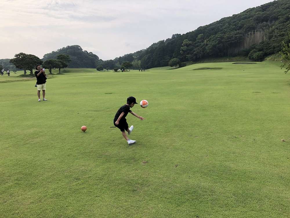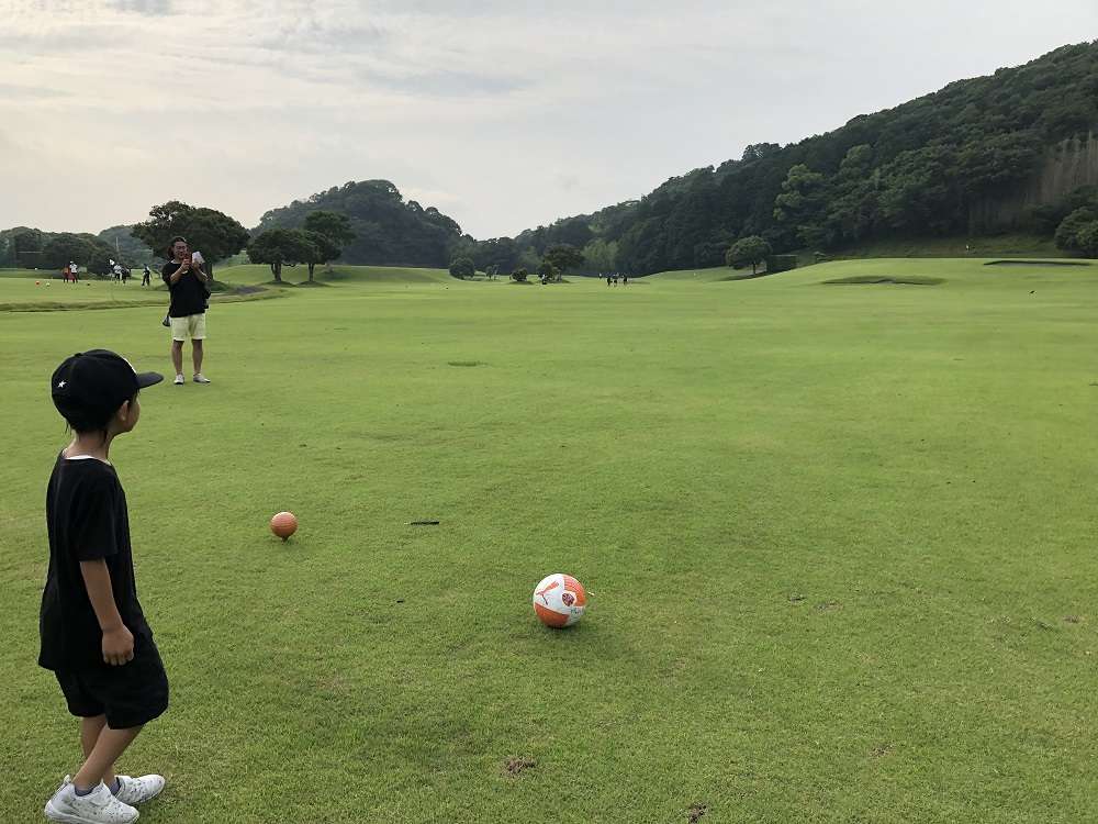 参加者の中には、ゴルフ場に足を運ぶこと、広大な芝生でボールを蹴ることが初めての方が多く、親子皆さま、ワクワクドキドキ。