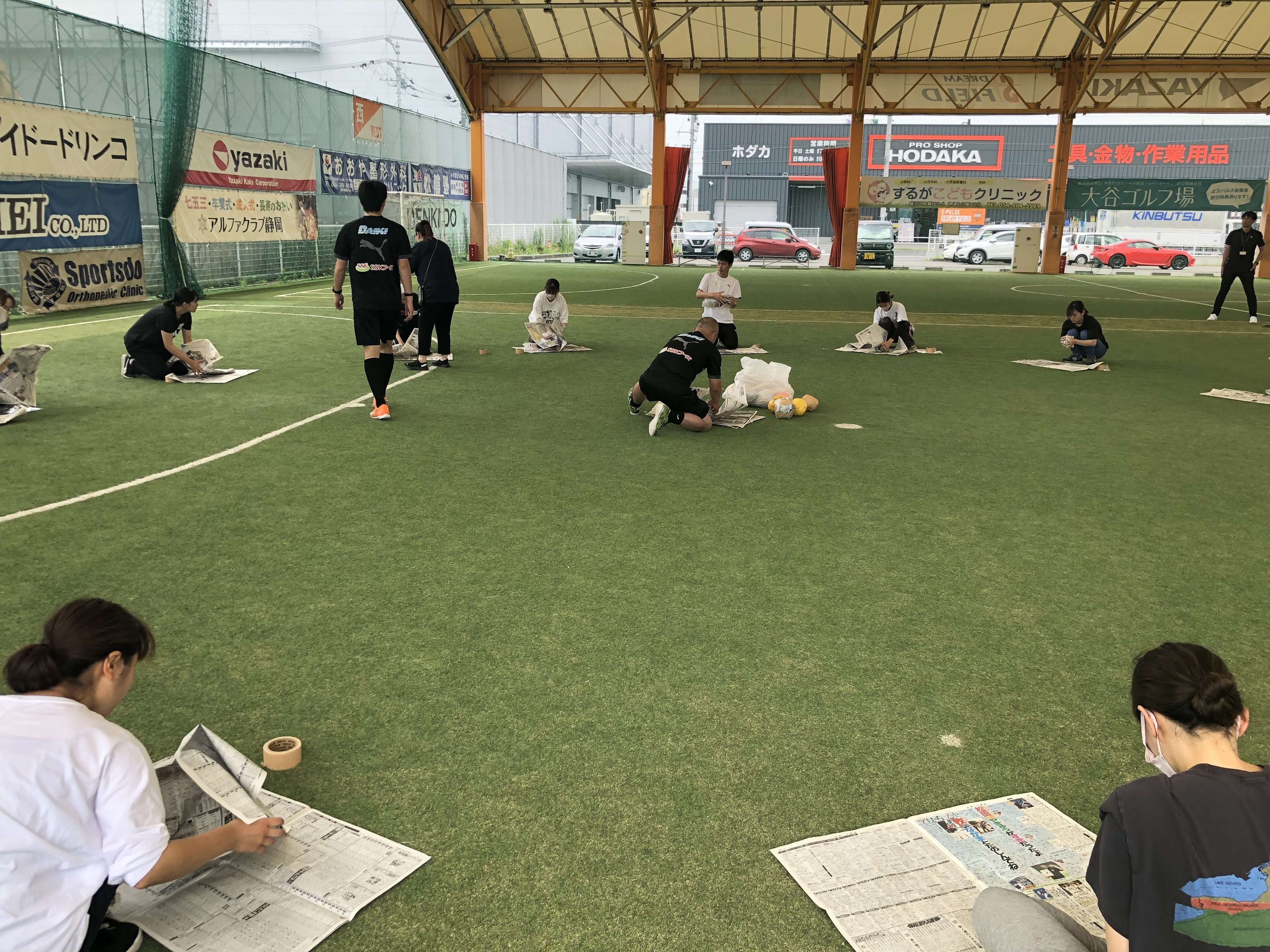 参加者の皆さんは、自分たちで作った新聞ボールを必死に追いかけシュートをしていました。皆さんの笑顔がとても印象的でした。