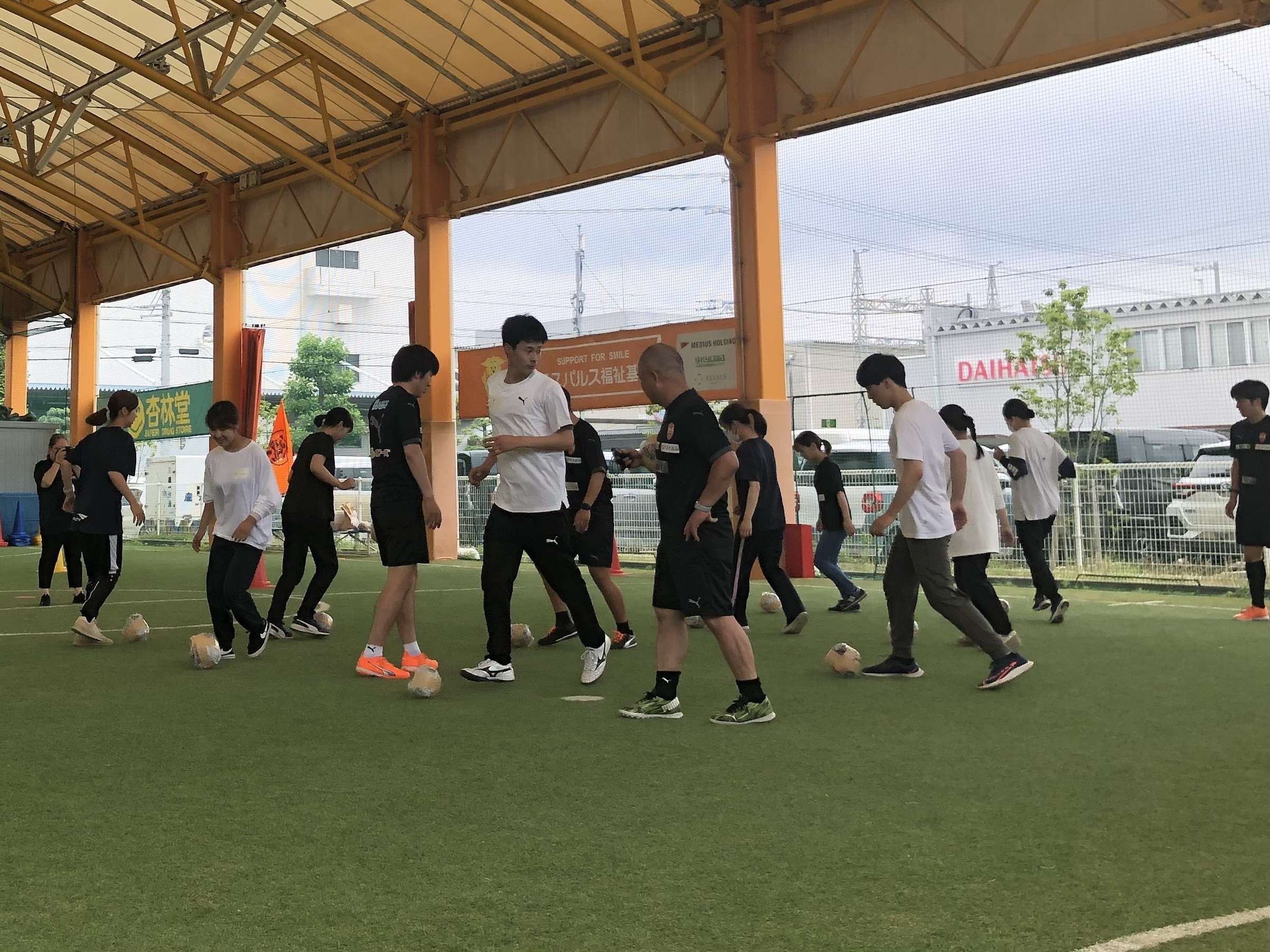 実技内容ではアイスブレイクから始まり、ボールを使った運動へと活動を進めました。