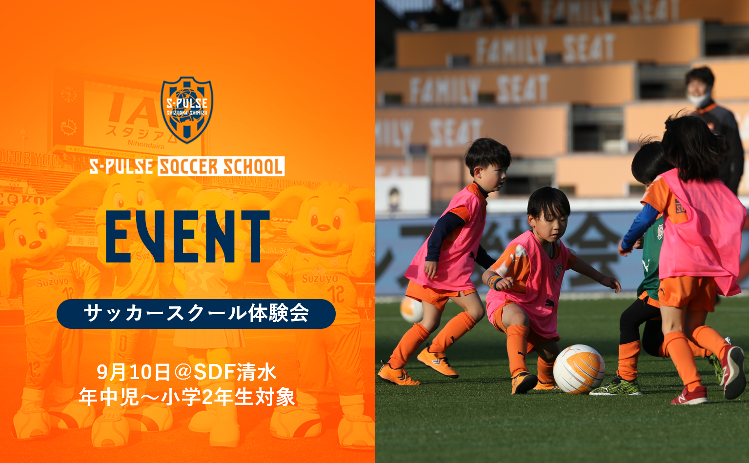 清水エスパルスは、9月10日(日)にエスパルスドリームフィールド清水にて、年中、年長児のお子様と小学1年生、2年生を対象とした『サッカースクール体験会』を開催いたします。