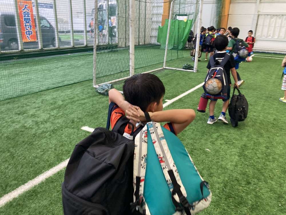 初日は強く降る雨の中、エスパルスドリームフィールド藤枝に集合した子どもたち。受付時にお家の方と一緒に来て楽しみな様子も束の間、同時にお家の方としばしのお別れとなり少し寂しそうな表情も見られました。