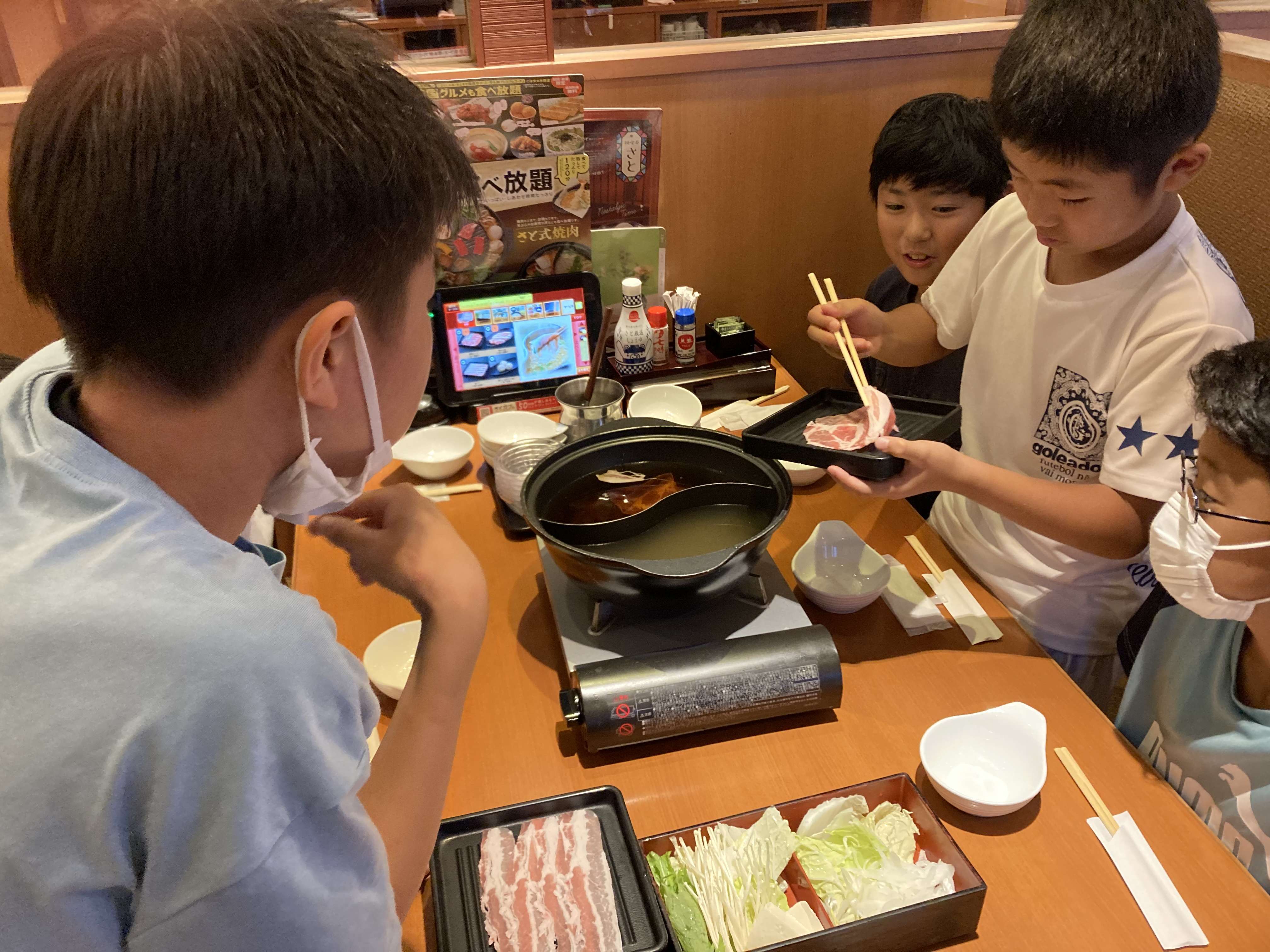 目の前にあるしゃぶしゃぶを口いっぱいに頬張る姿、少しずつ口の中へ入れる姿、まだまだ足りないと注文する姿、非常に賑やかに夕食を楽しみました!