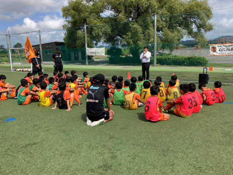 大会が始まるにあたって、キャンプをサポートいただいている松本印刷株式会社 松本憲治社長よりお話をいただき、子ども達の顔付きも戦闘モードへとなっていきます。
