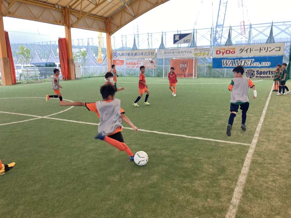 途中からはゴール決めたら個人に1ポイントというルールで行い、選手たちは味方と協力してゴールに向かったり、自らドリブルしてシュートを打ったりととても積極的にゴールを奪いに行っており、ゴールへの意識や攻守の切り替えに変化が見られたことにより、とても白熱した試合展開になりました。